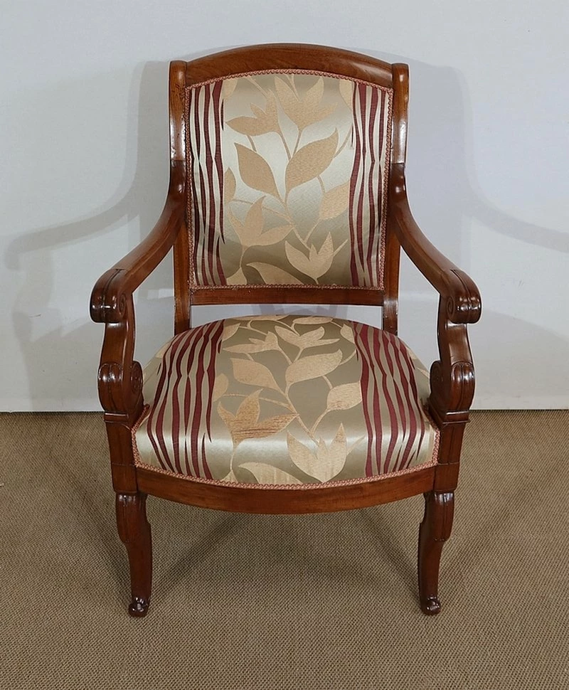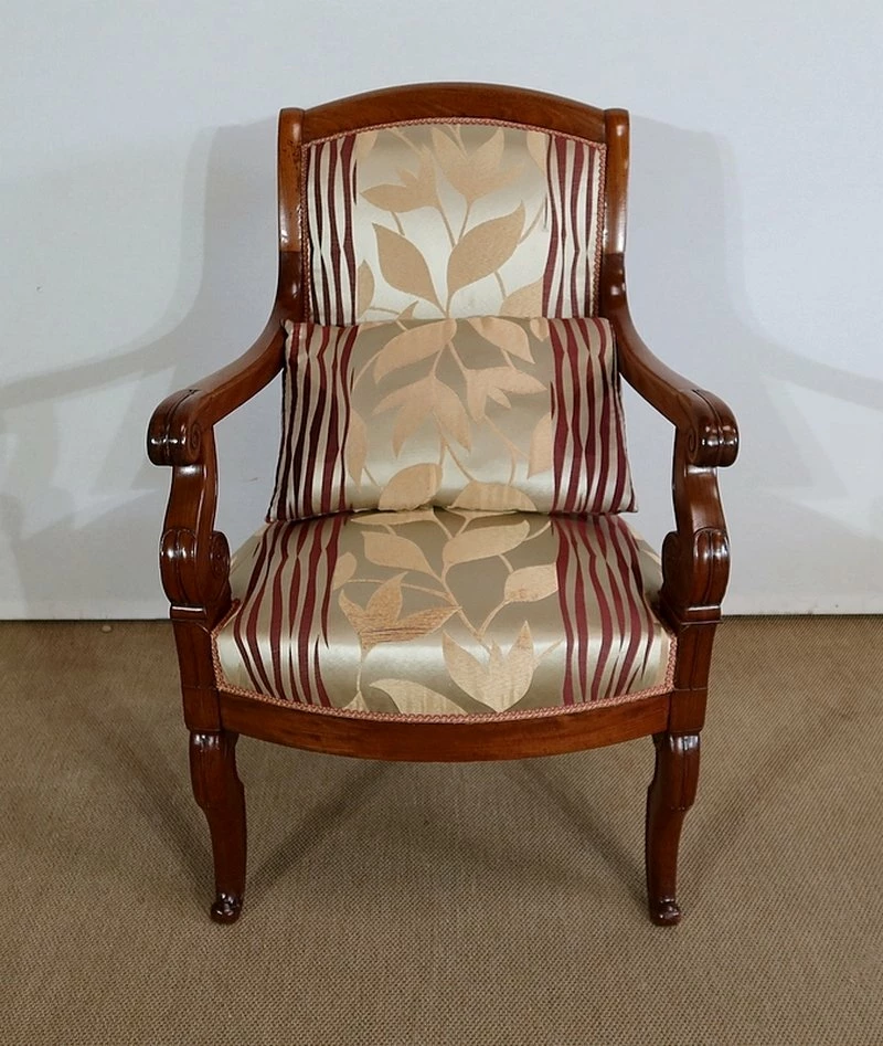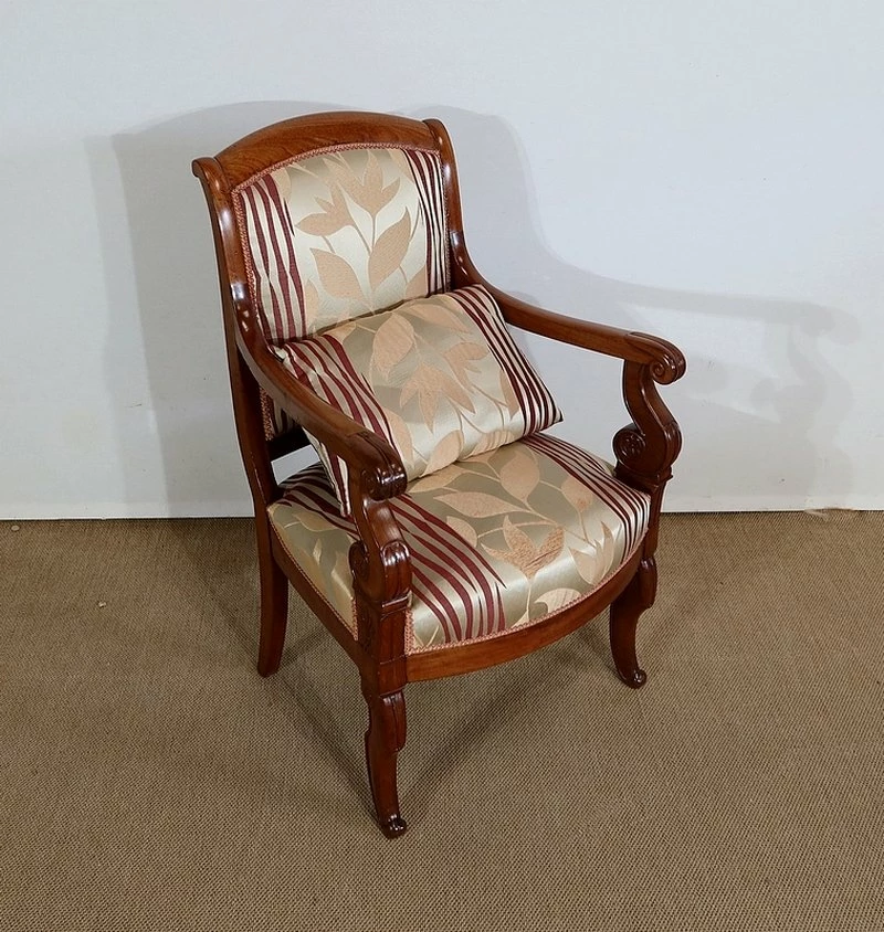 The continuity of the rear feet is done by an upholstered console supporting smooth hits. On the sides, we discover sculpted ornaments representing rosettes and palmettes.