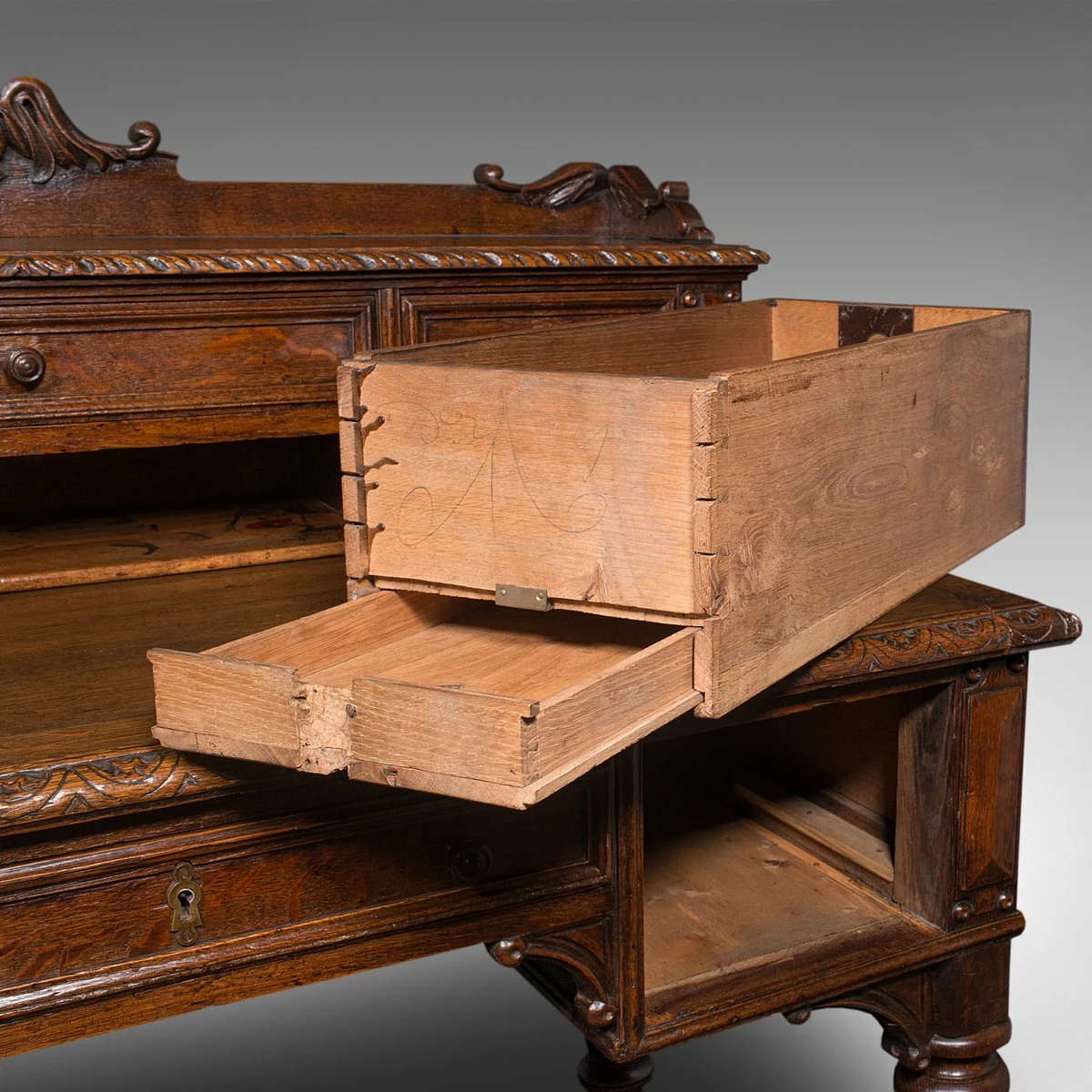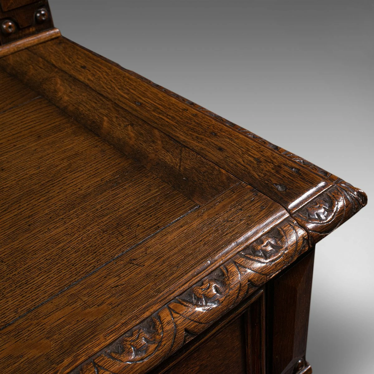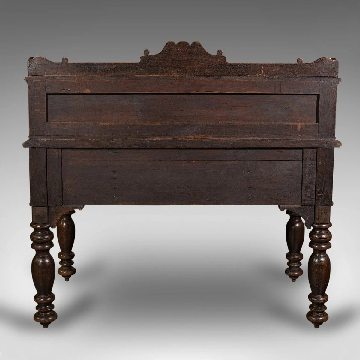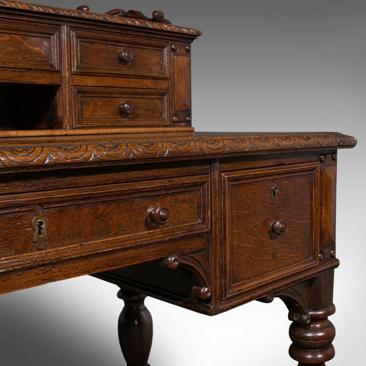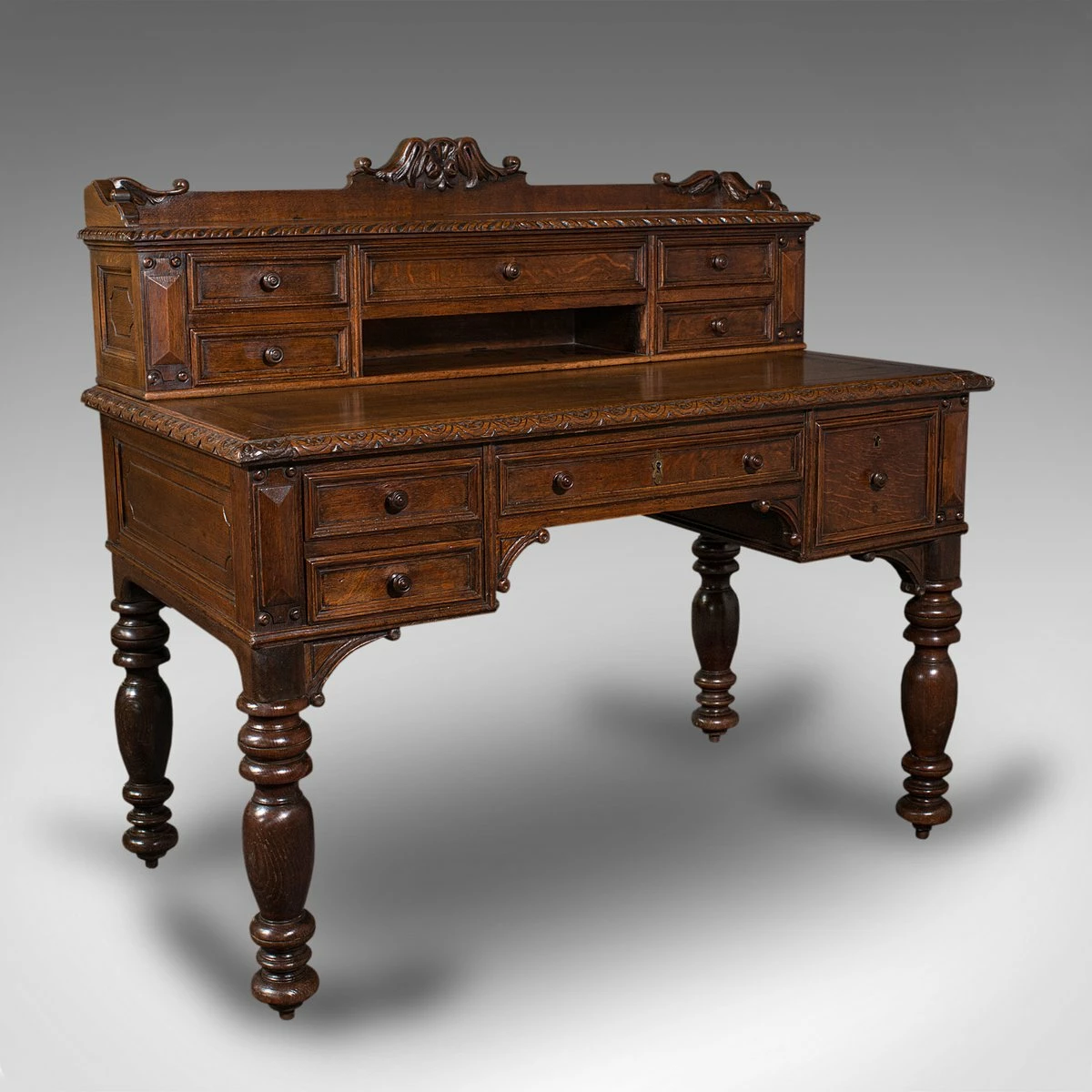 This is a dashing antique carved correspondence desk, offering the delight of a hidden compartment and fascinating extending writing surface. Solid joints and construction, delivered waxed, polished and ready for the home.