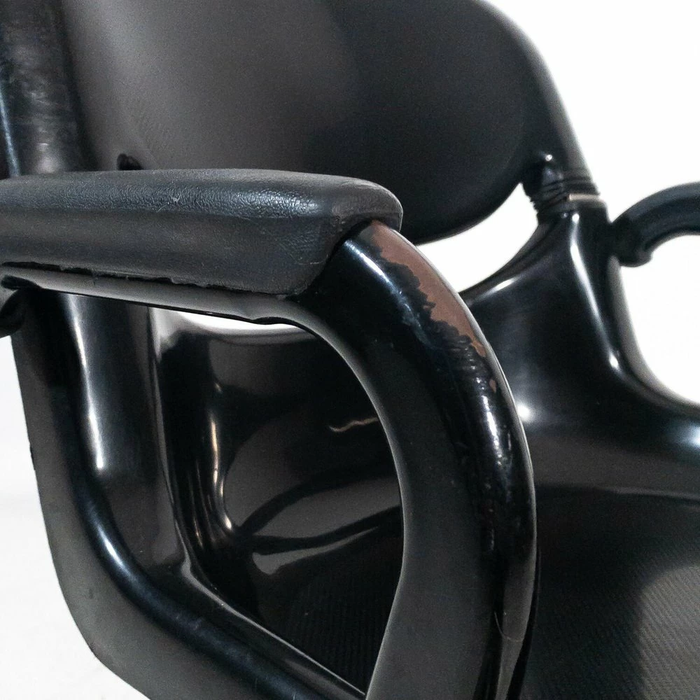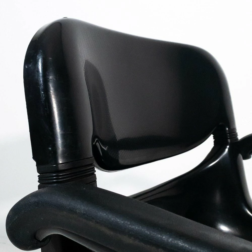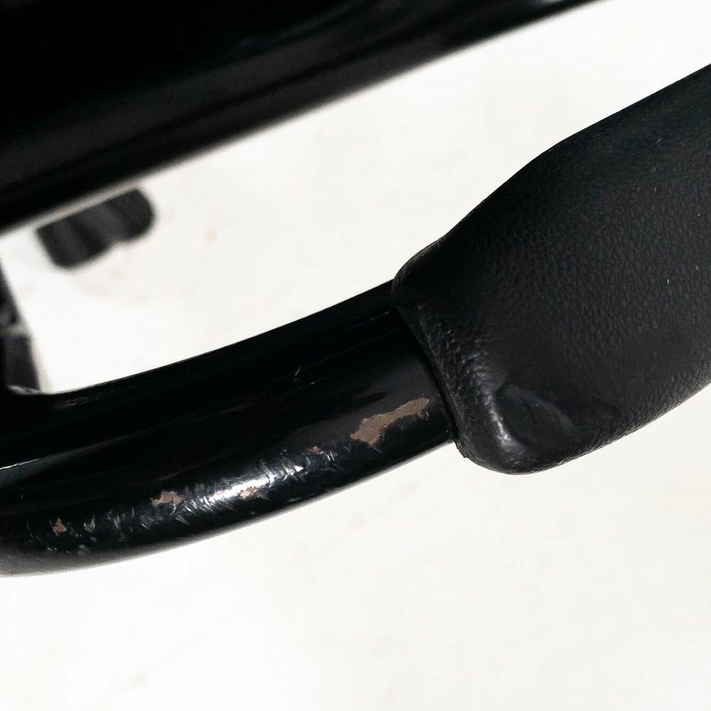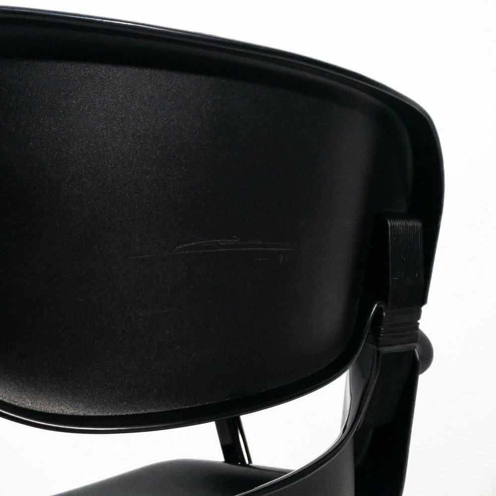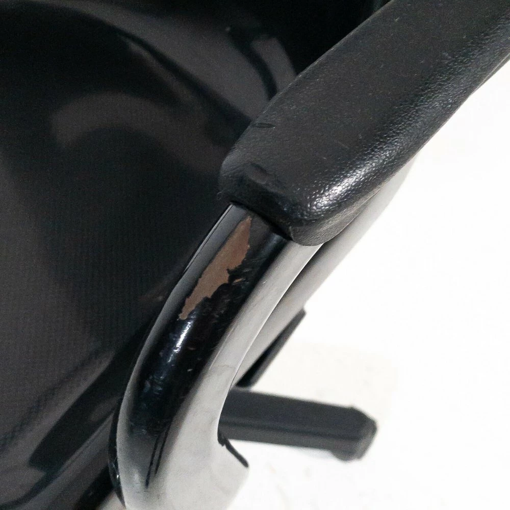 A chair has a breaking of the back of the backrest, A chair has a metal support inserted in the back of the back |