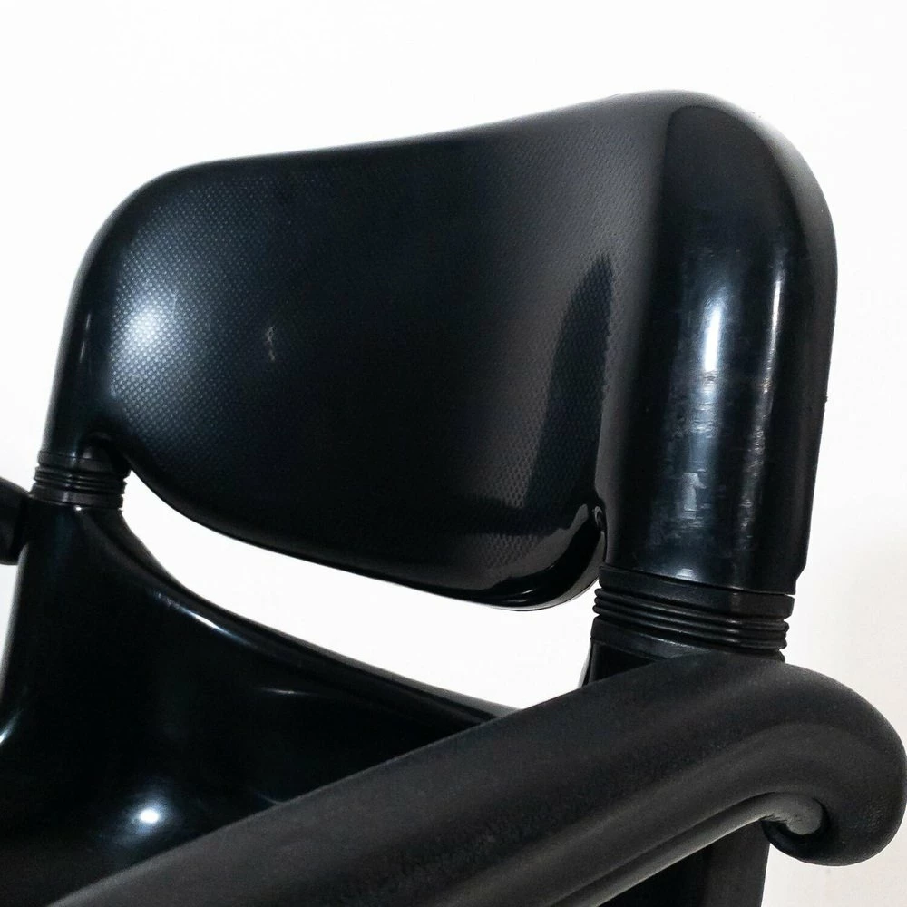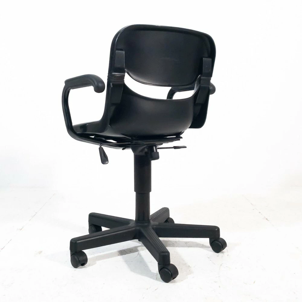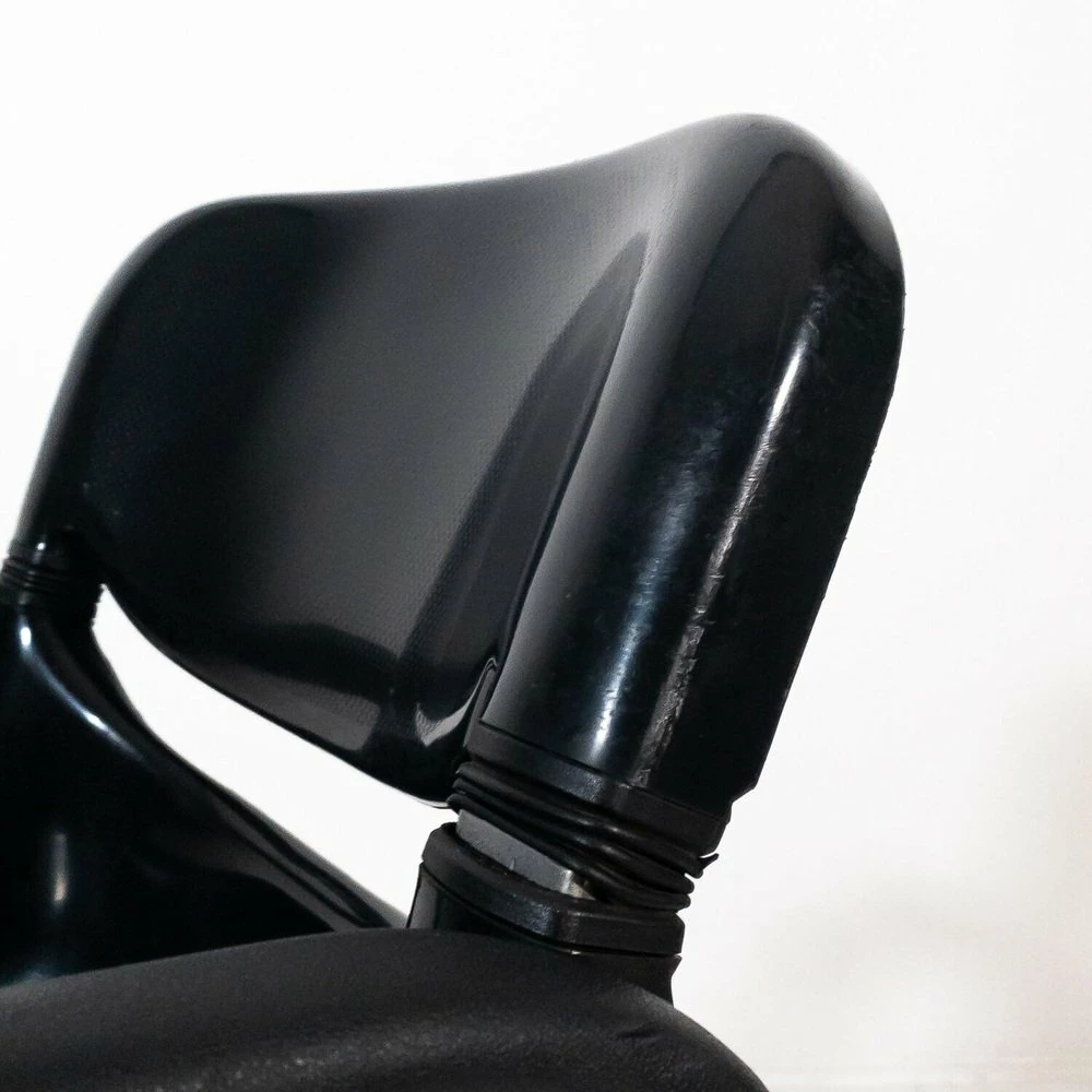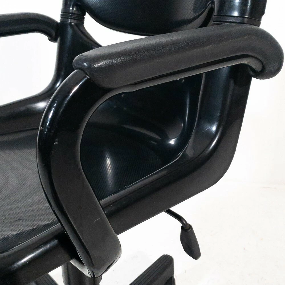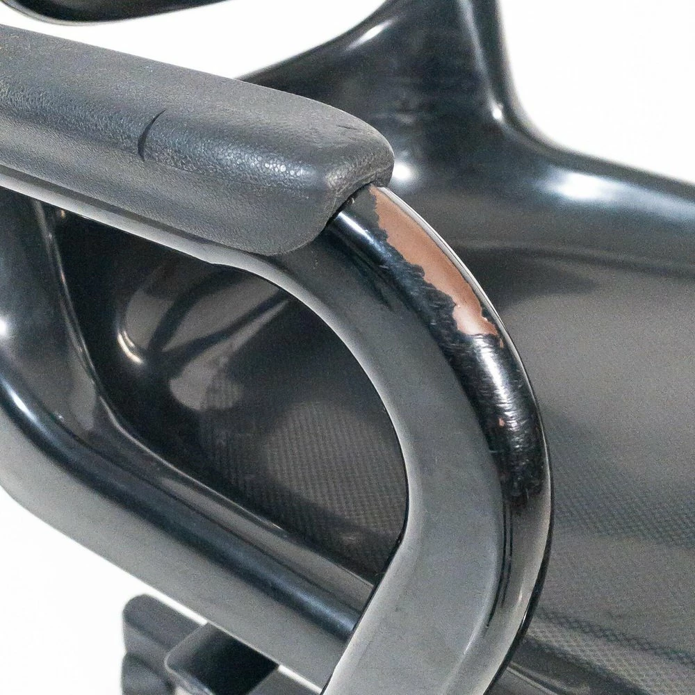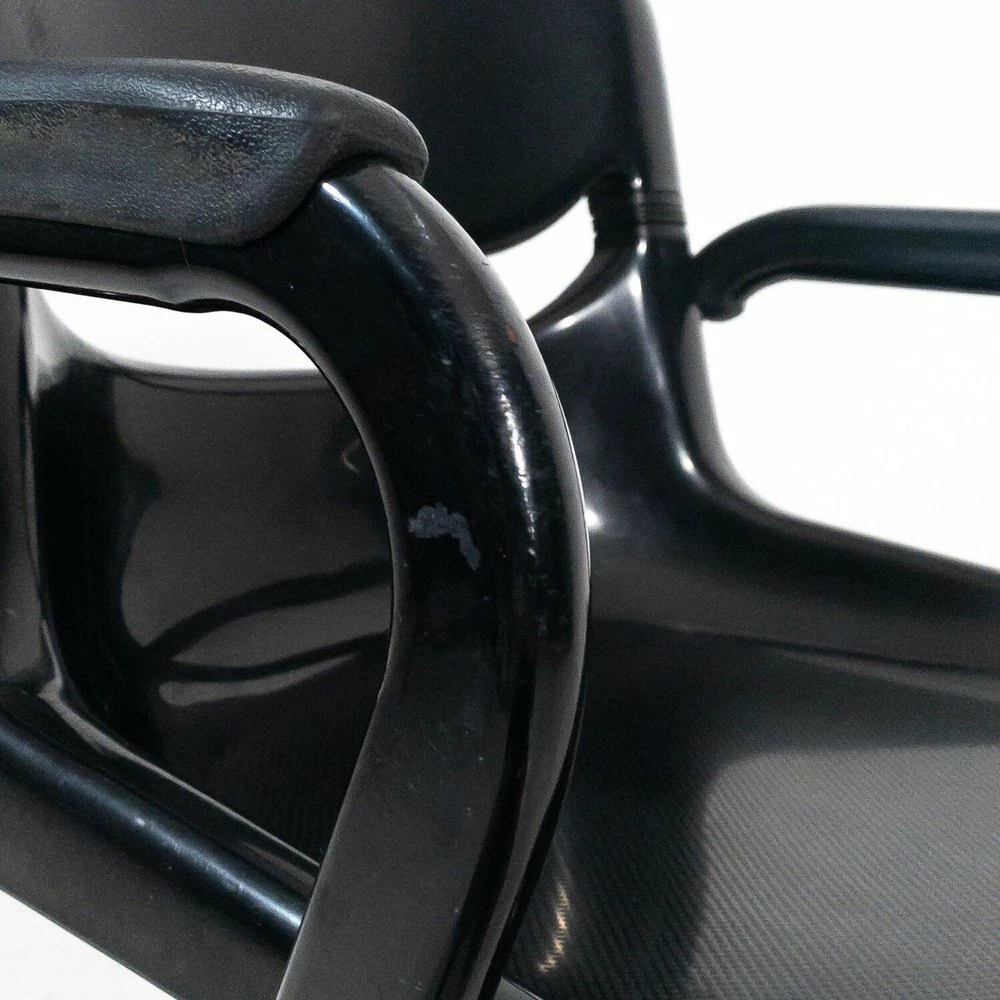 A chair has a breaking of the back of the backrest, A chair has a metal support inserted in the back of the back |