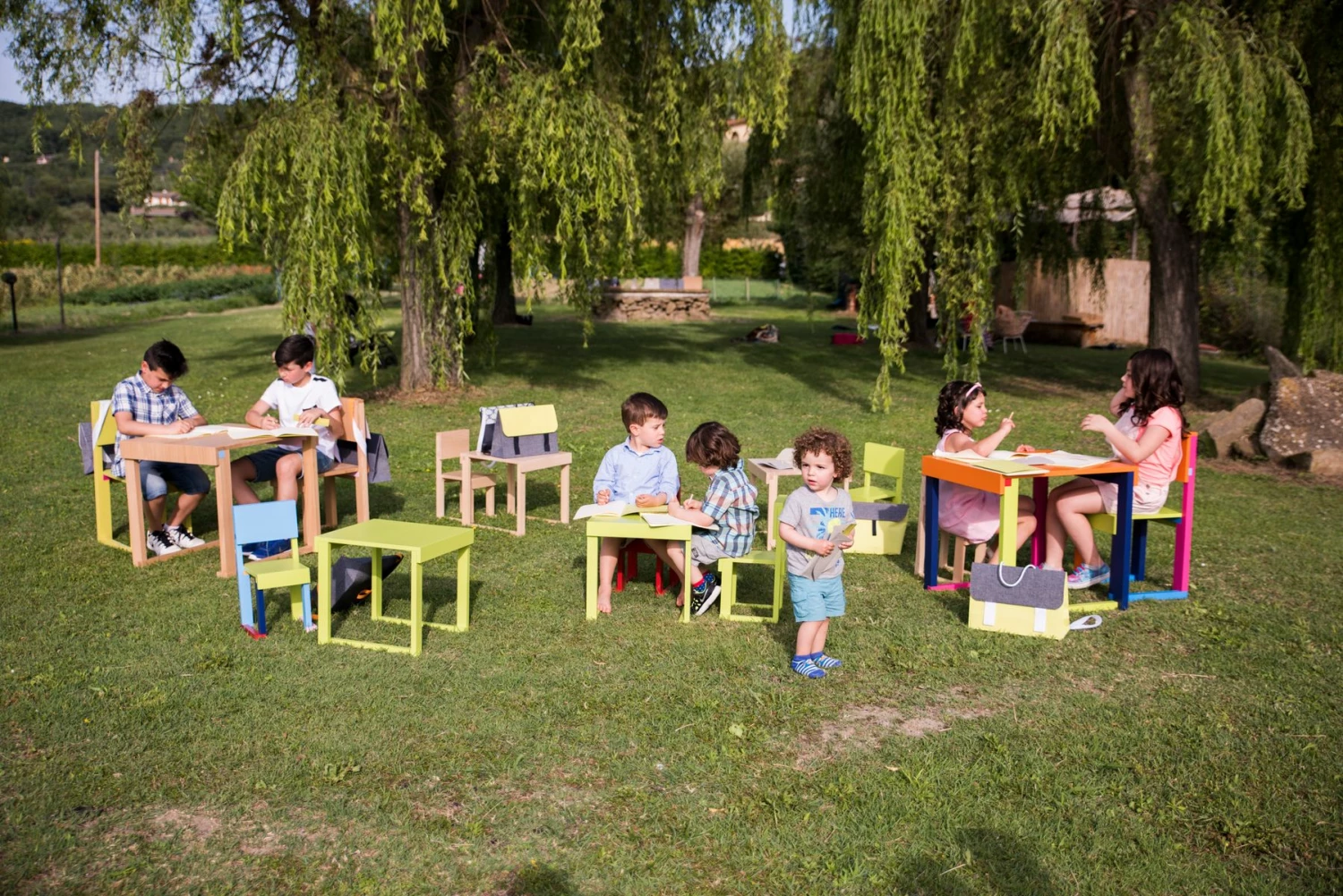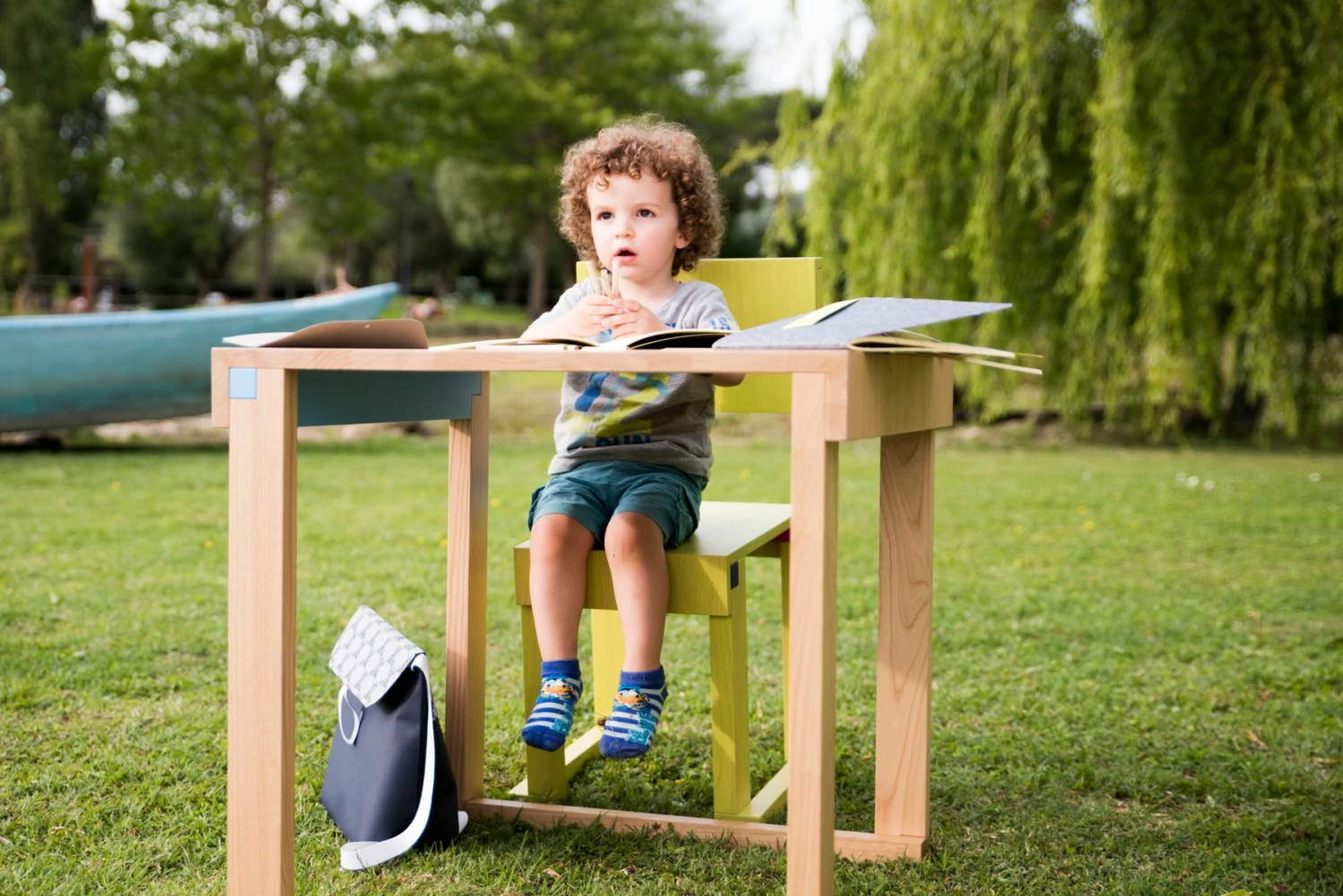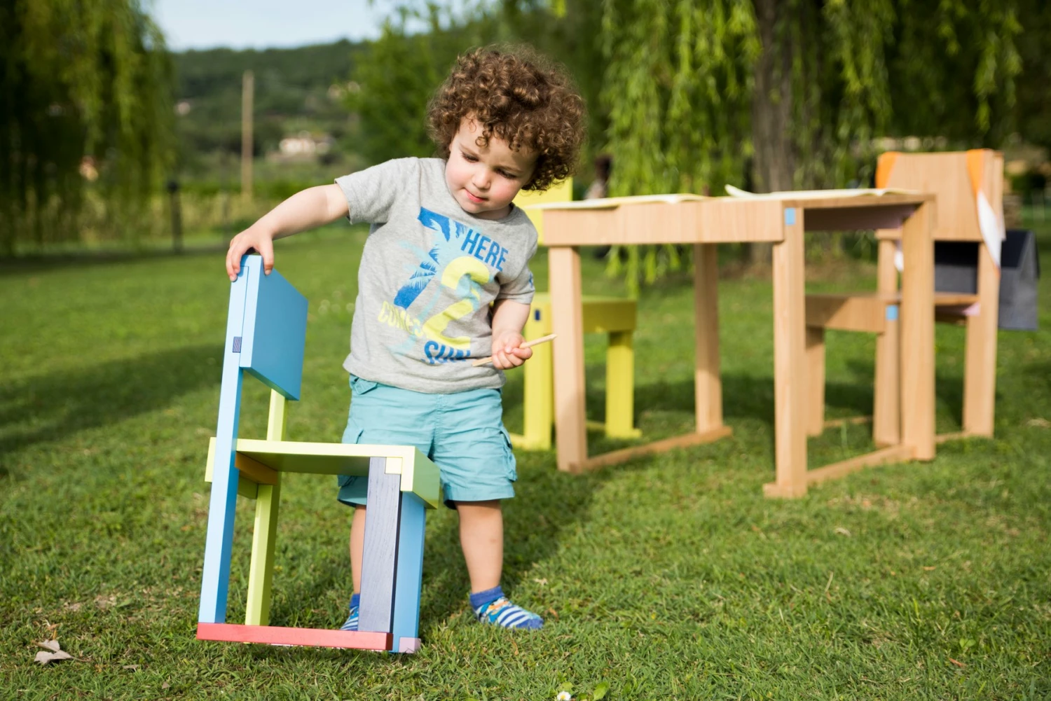 Table, 4-10 years old, 100% eco-sustainable, resistant, modular solid wood, FINISHES full water cycle and FOOD. It can be assembled, disassembled and moved as the child wishes, all with ease: the measurements are designed to be within the child’s reach, it is very light but always remains very stable (ITALIAN PATENT). Follows the family according to its needs.