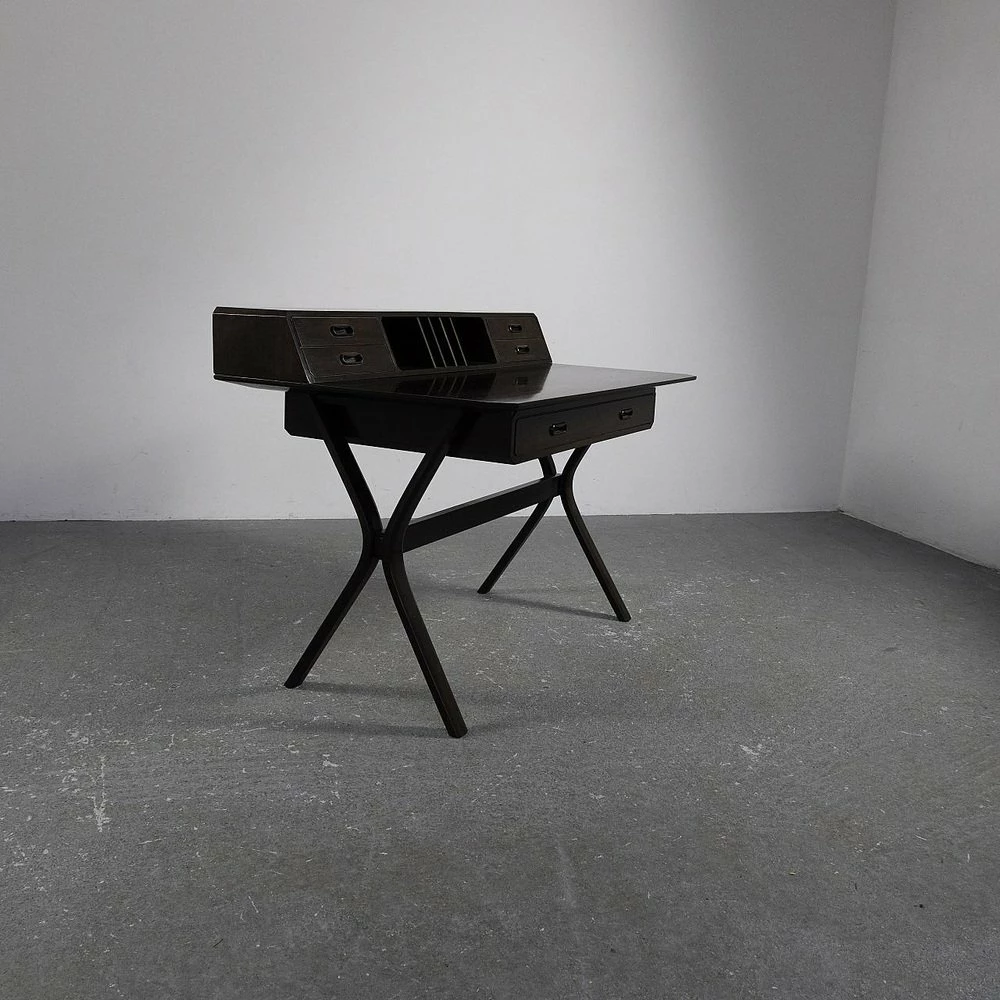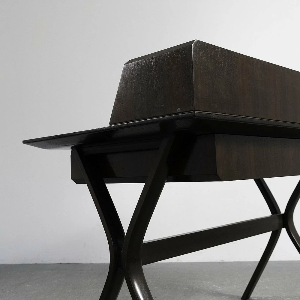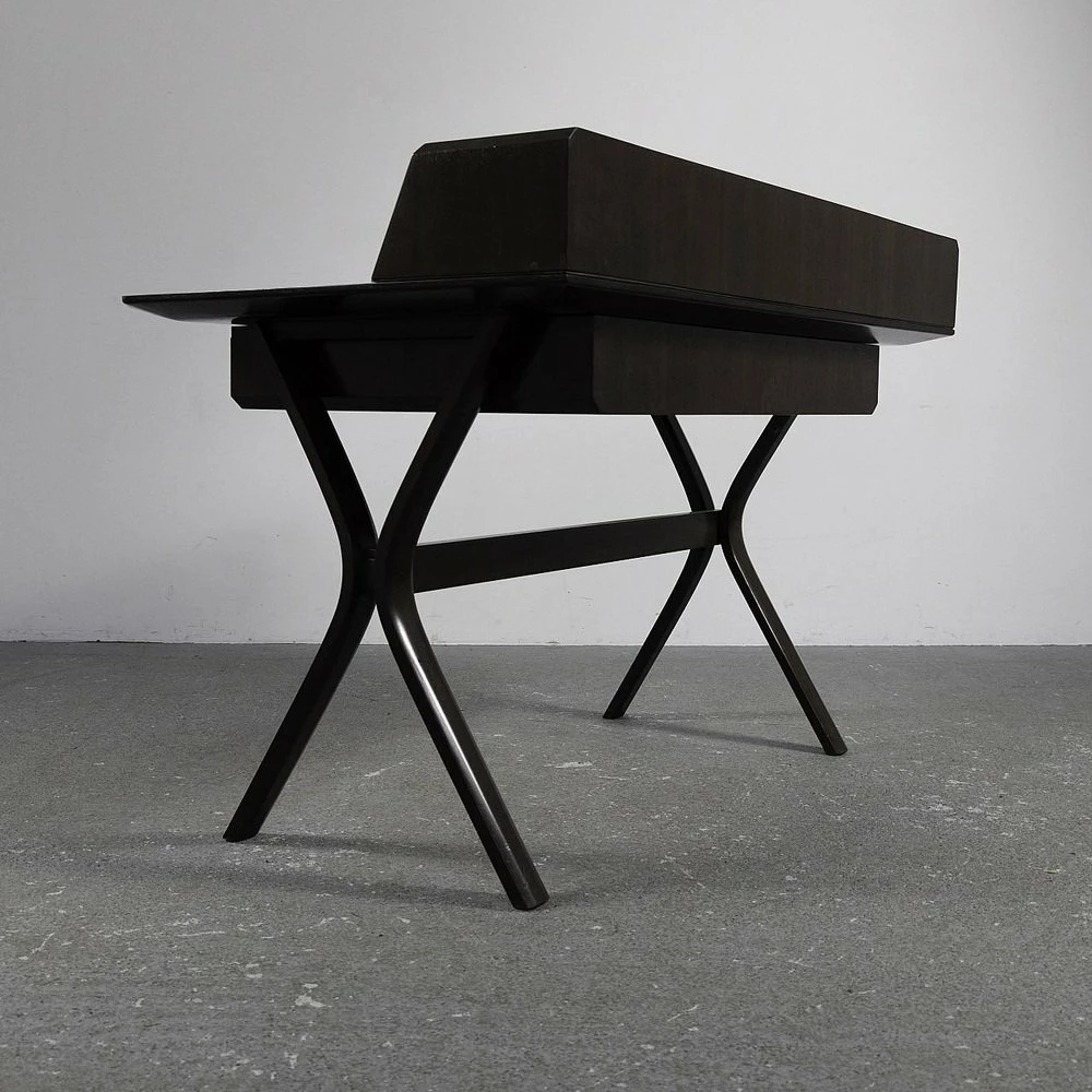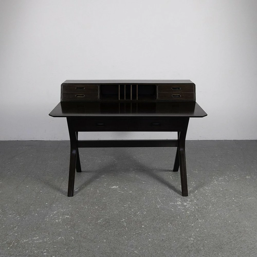 Completely restored mahogany writing desk with upper storage compartment and 2 lower drawers.