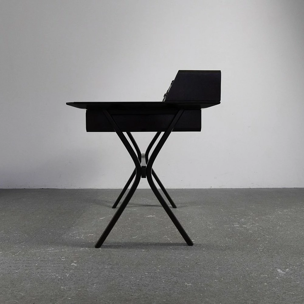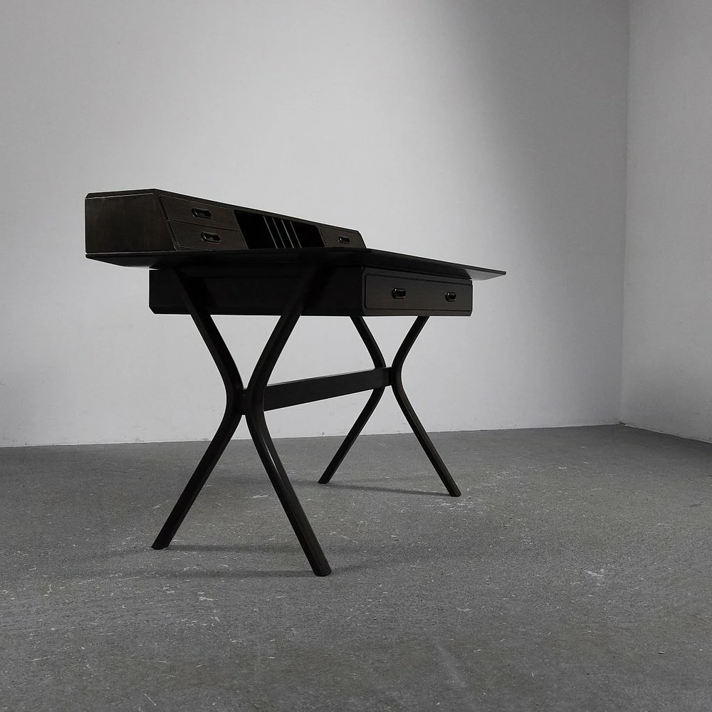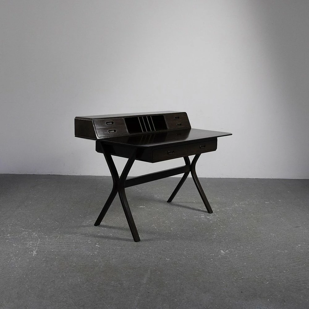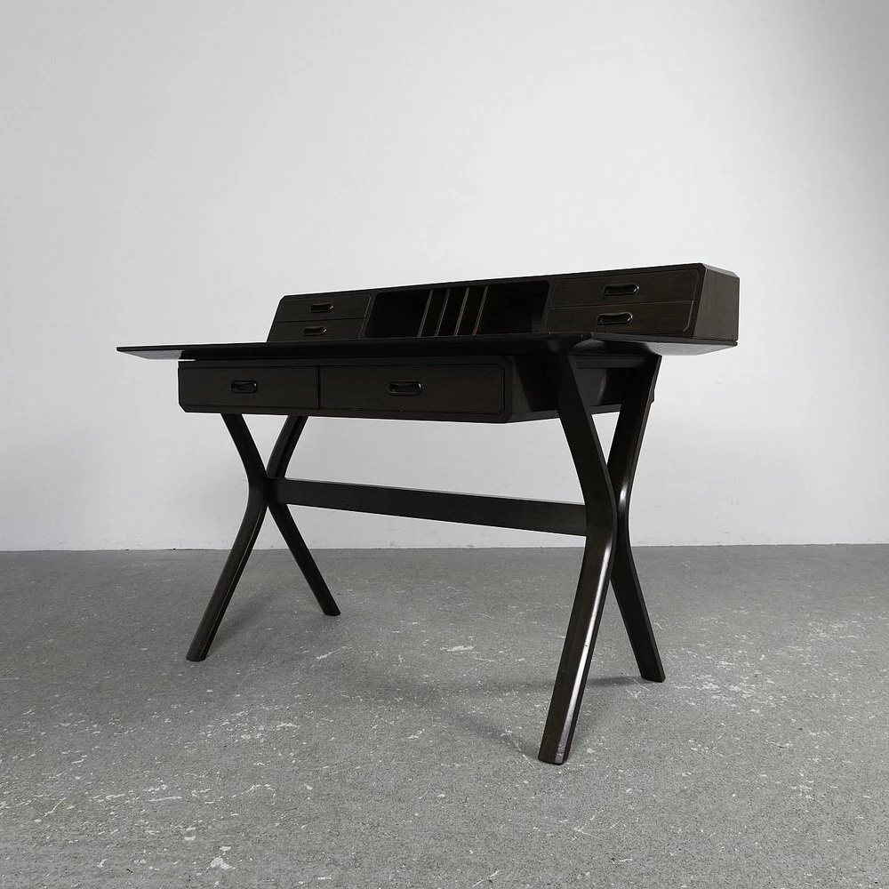 Completely restored mahogany writing desk with upper storage compartment and 2 lower drawers.