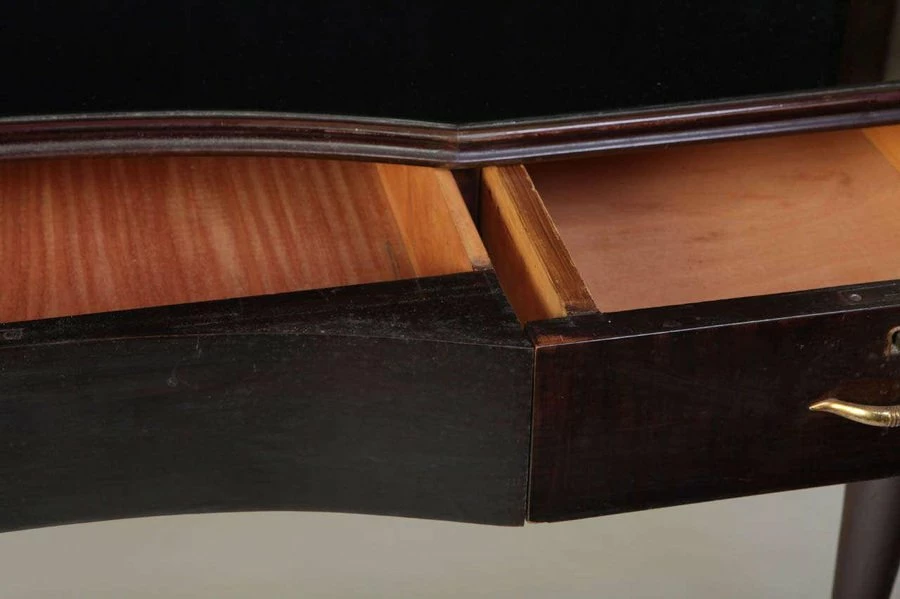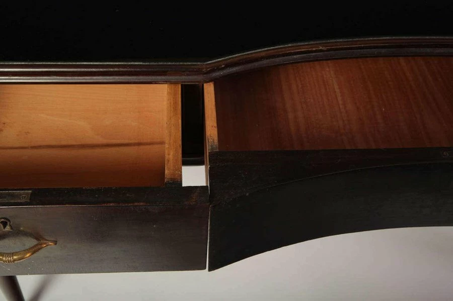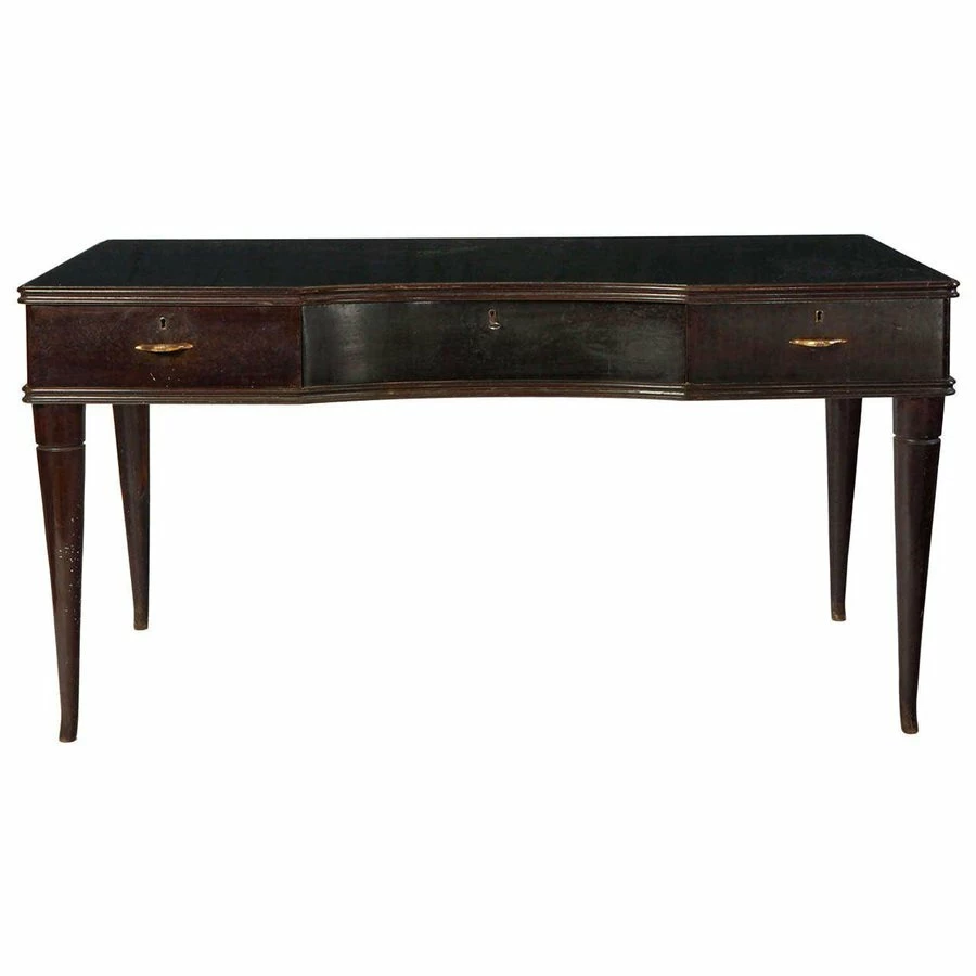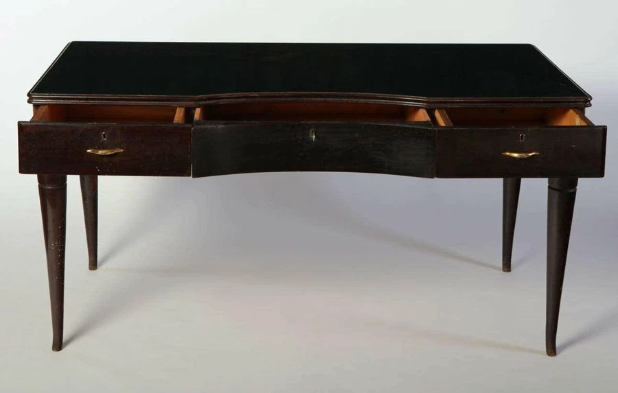 1950s Italian writing table in lacquered wood with three drawers.