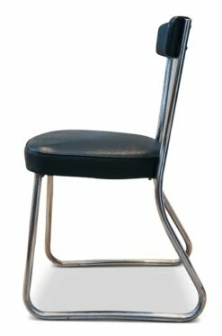 French Bauhaus Tubular Frame Office Chair With Dark Green Leatherette Seat From Roneo, 1950s