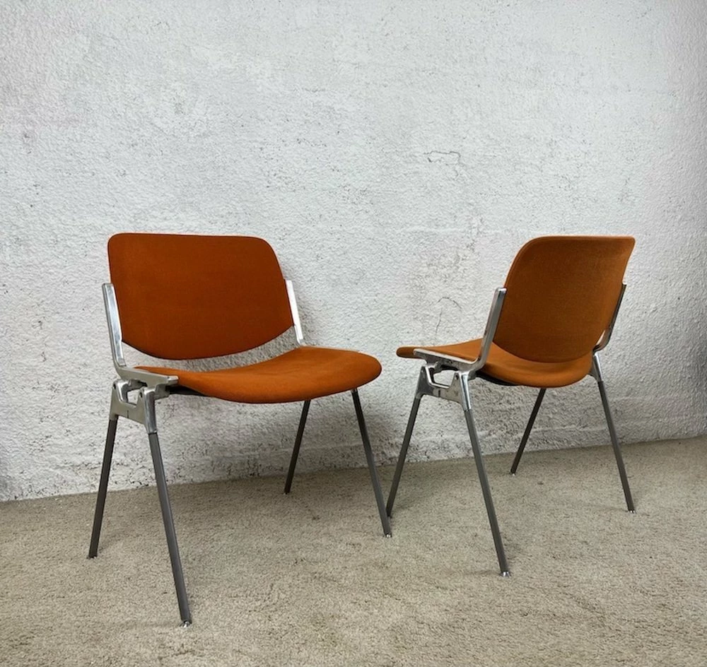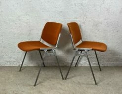 This set of two pieces comes with the orange upholstery – a signature of the age. They can be matched with the green set, available in another listing.