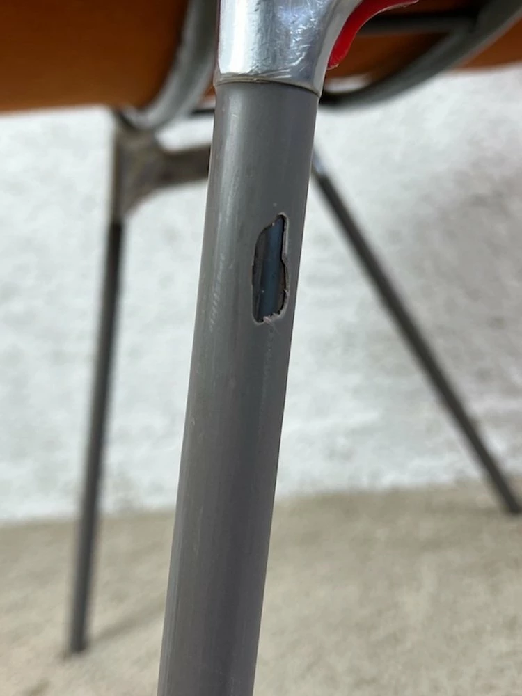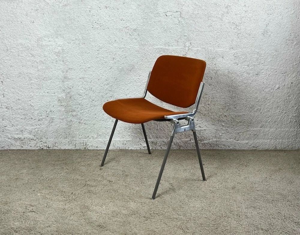 This model was the classic choice of Italian office furniture in the late 70s and early 80s. The concept evokes the style of creations like the Synthesis Series from Ettore Sottsass. Its minimalistic and rational shape is a great example of industrial design. The quality of materials like the heavy metal base and the sturdy fabric make this piece as nice as durable. The pads of the four legs are individually adjustable to ensure great stability.