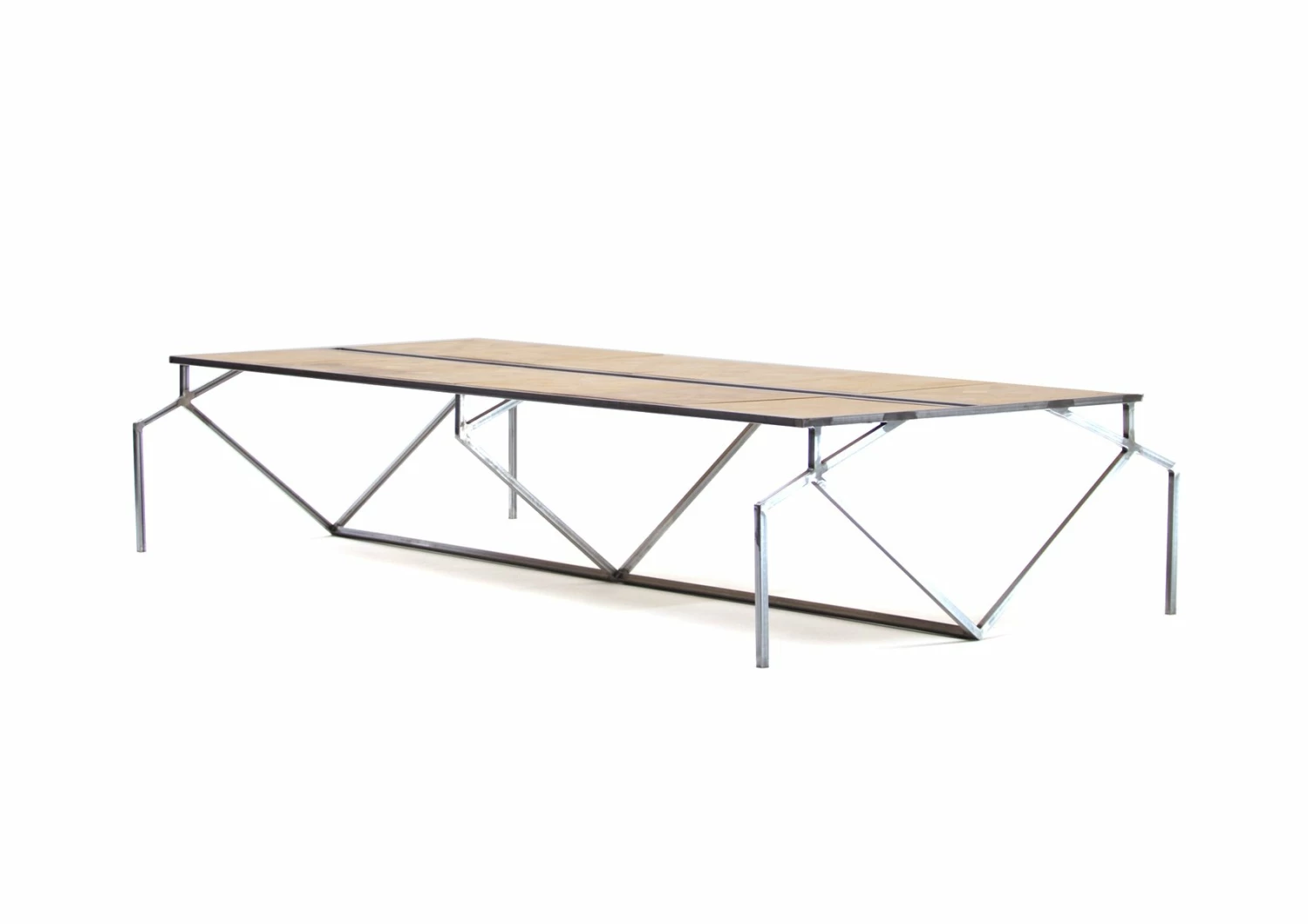 despite its very impressive dimensions, the table manages not to block the room as a “giant.” on the contrary, an impression of weightlessness is made possible by the welding of thin but highly robust square tubes (3cm x 3cm) made of krupp steel.