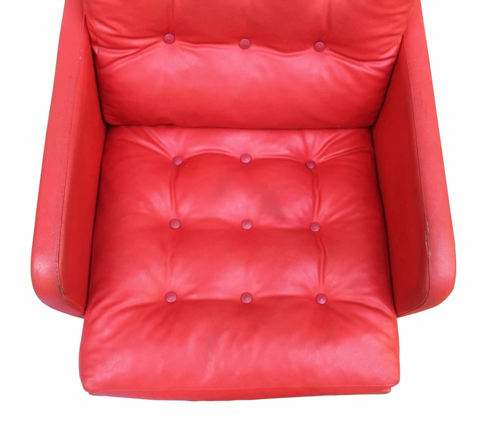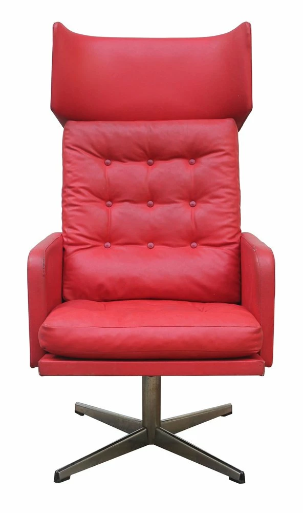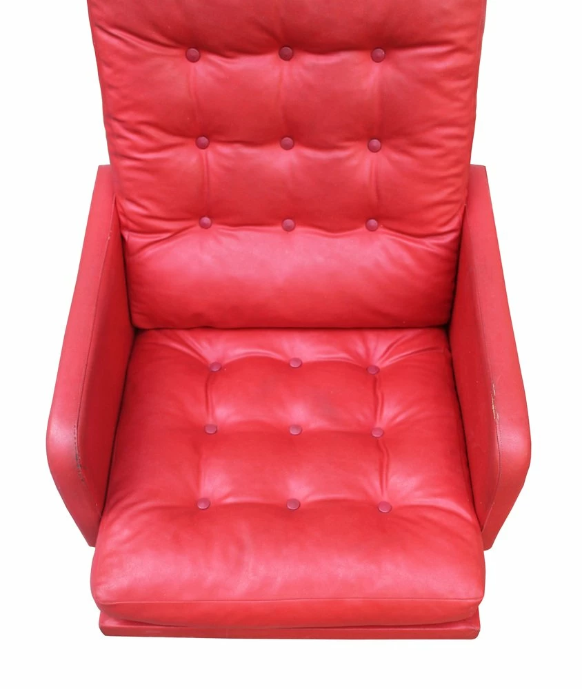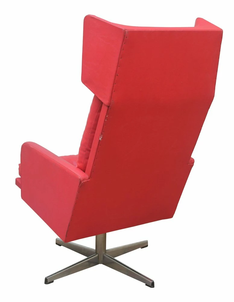 The steel base of the chair allows for swivelling and shows signs of some wear. The chair has been cleaned and treated with a special agent for leather. The leather parts are cracked in some places, but the faux leather body is in excellent condition.