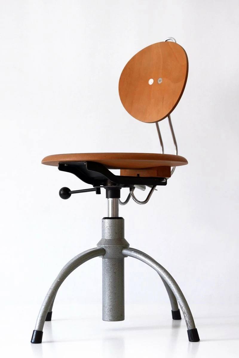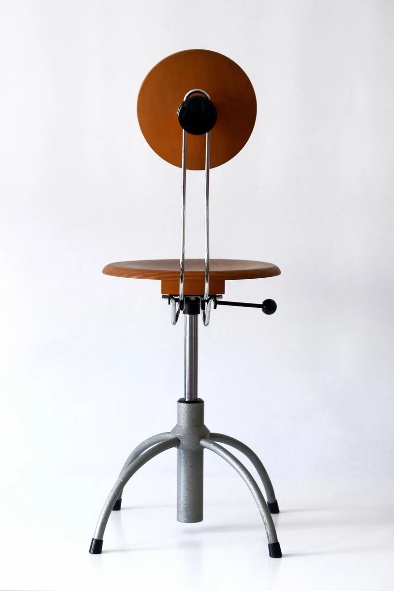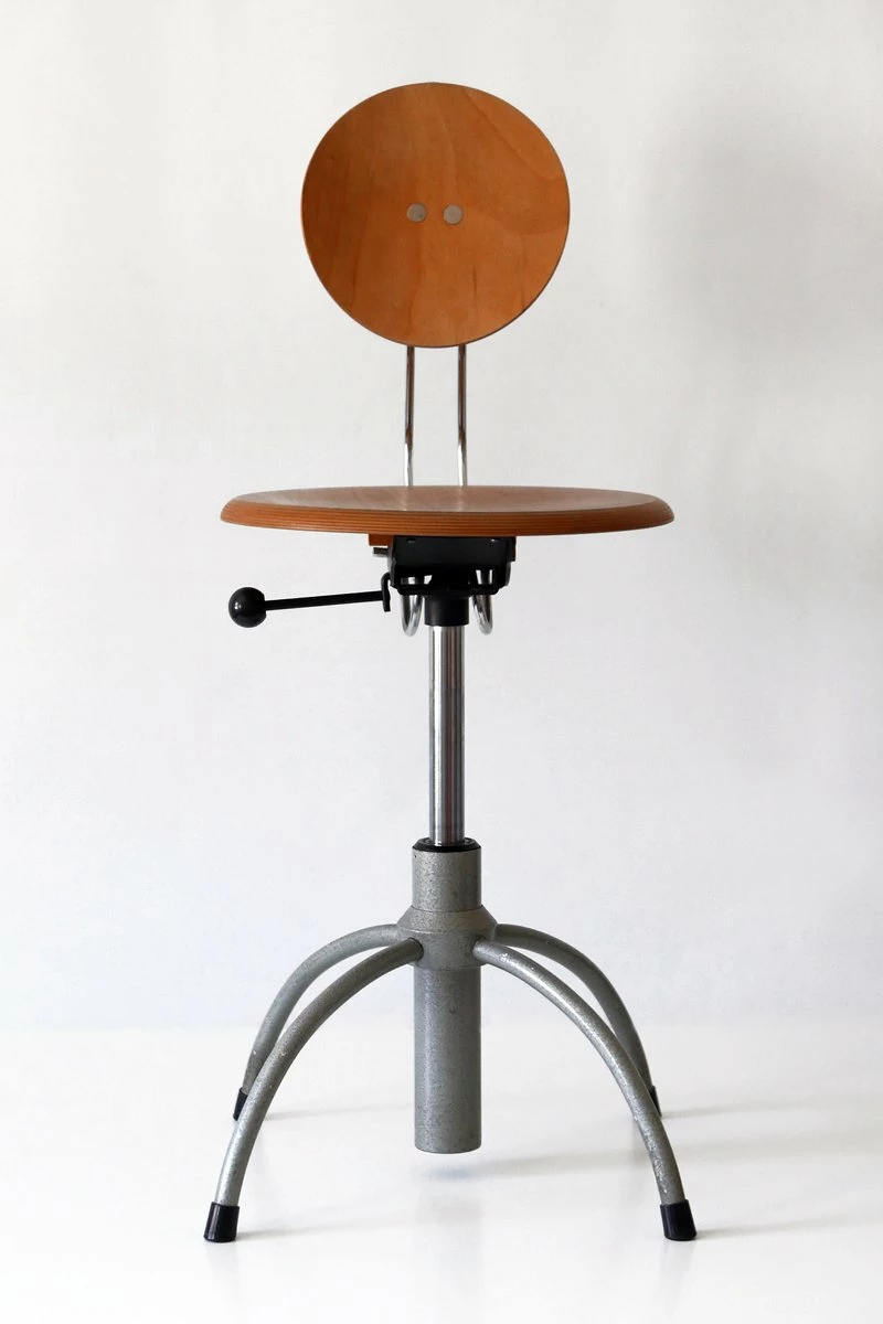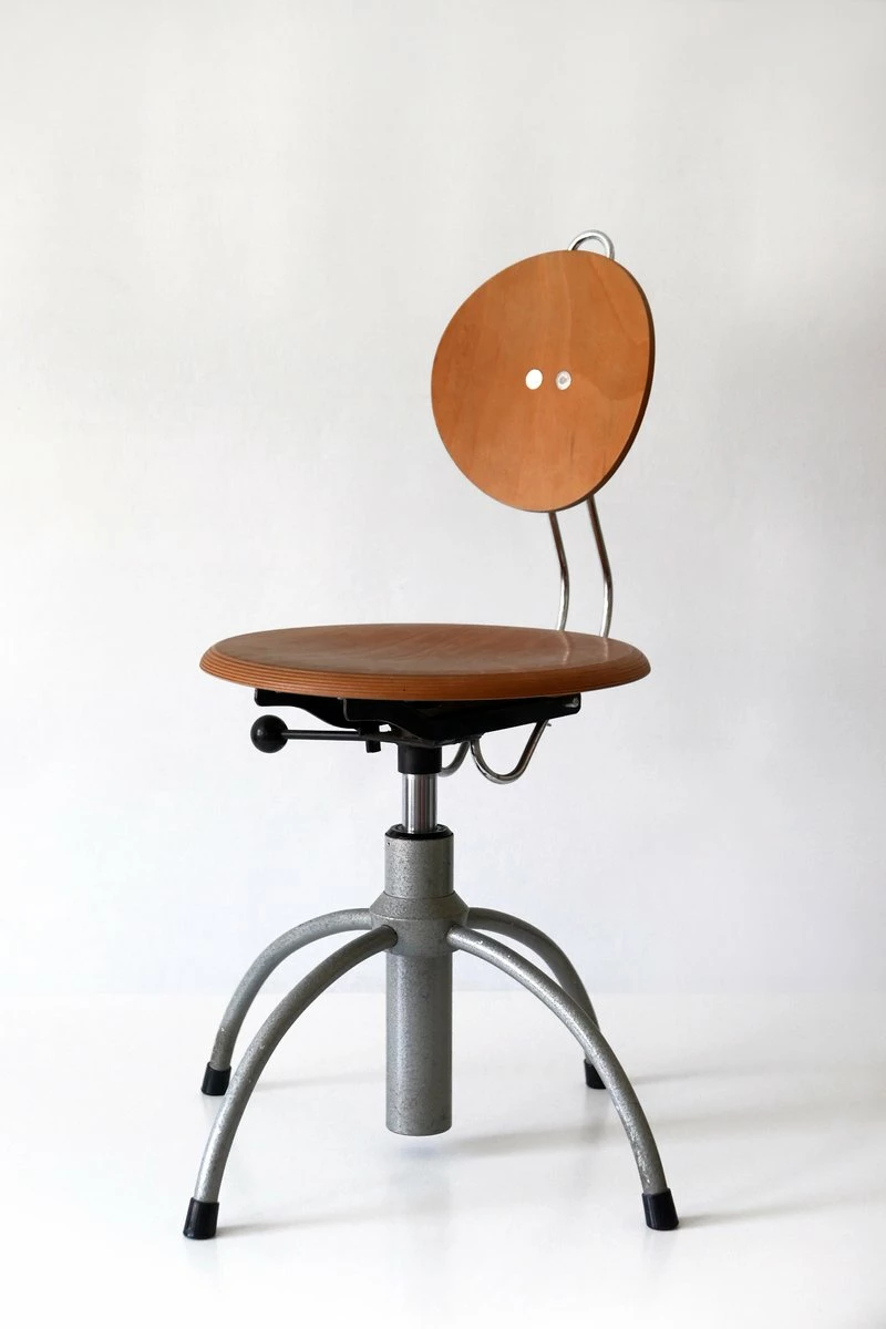 Executed in plywood and enameled tubular steel.