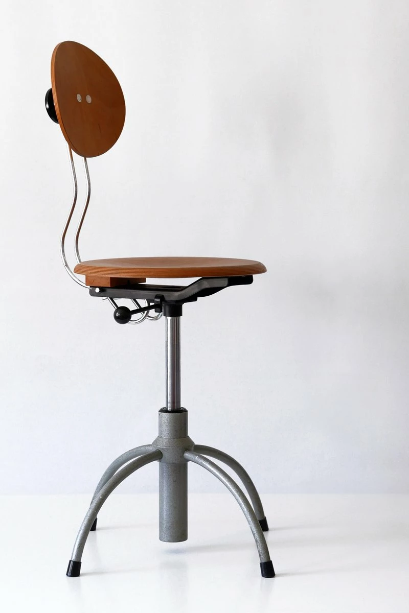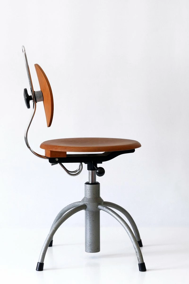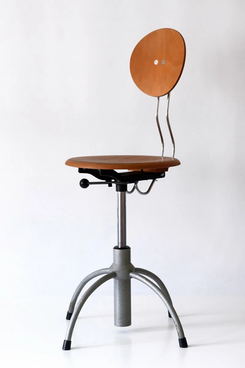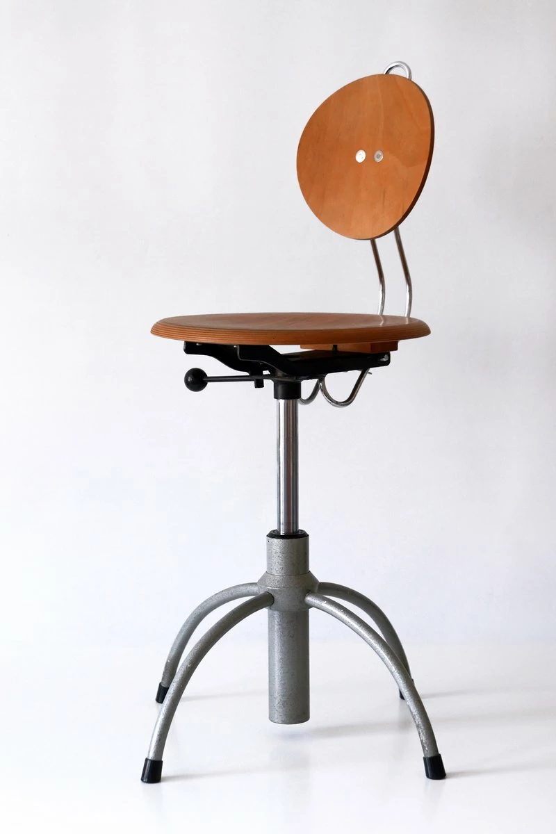 Executed in plywood and enameled tubular steel.