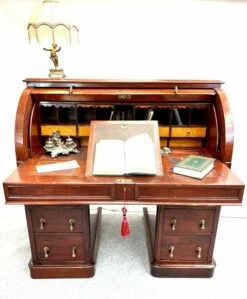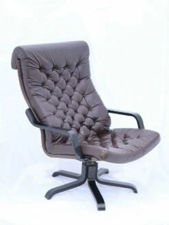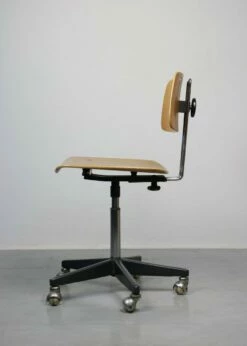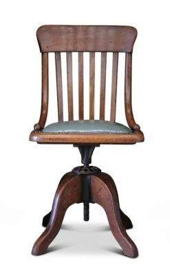 Victorian Polished Green Leather & Bentwood Revolving Desk Chair With Brass Stud Detailing, 1890s