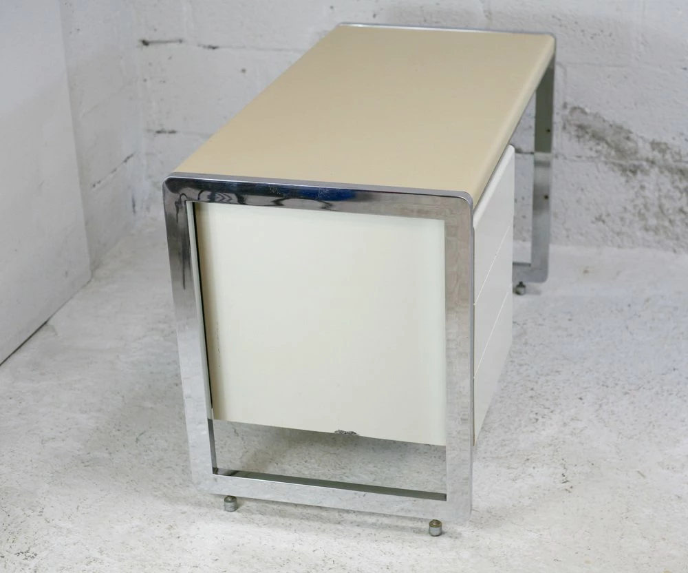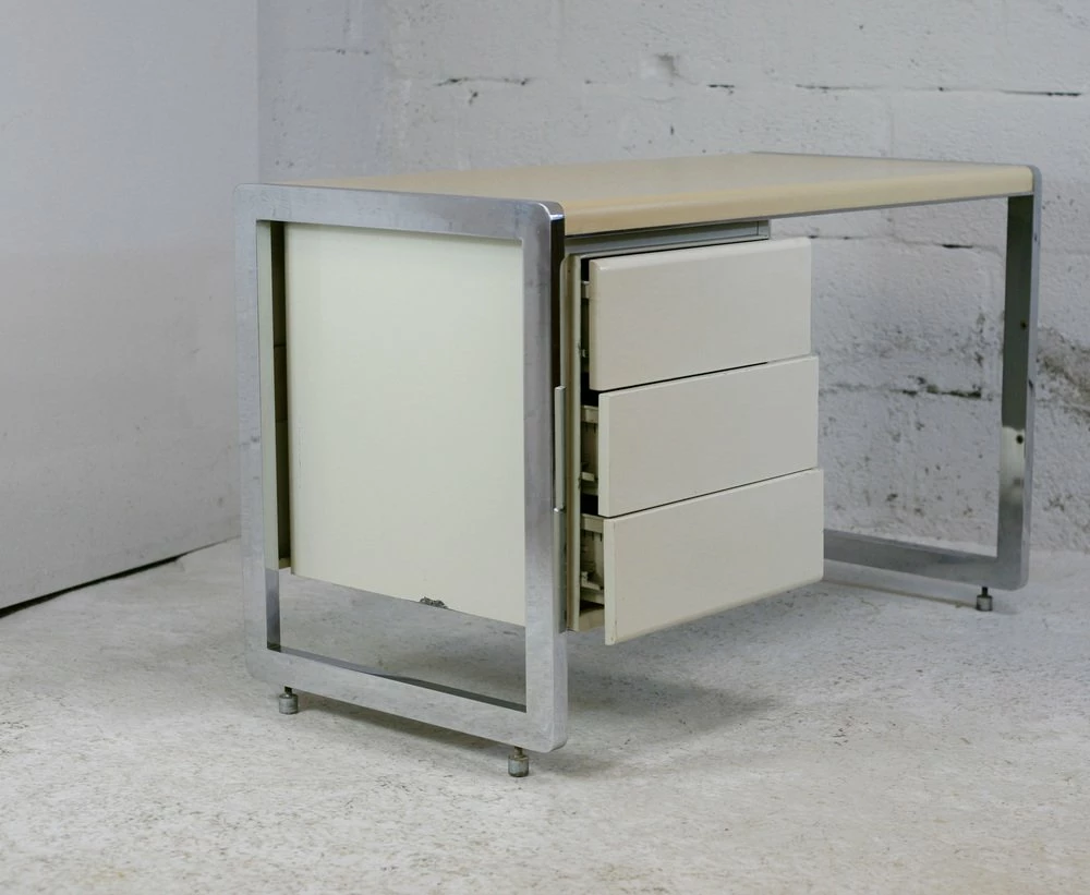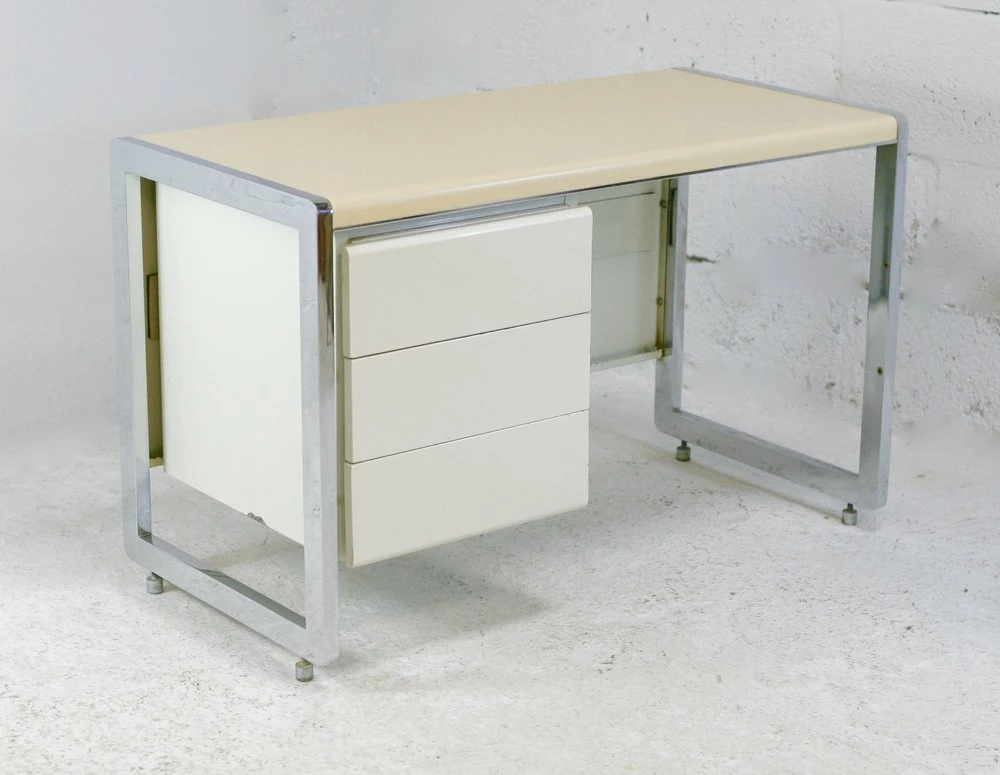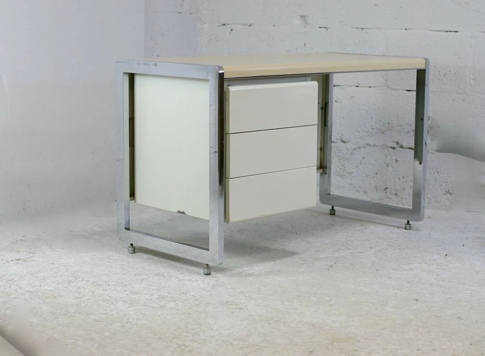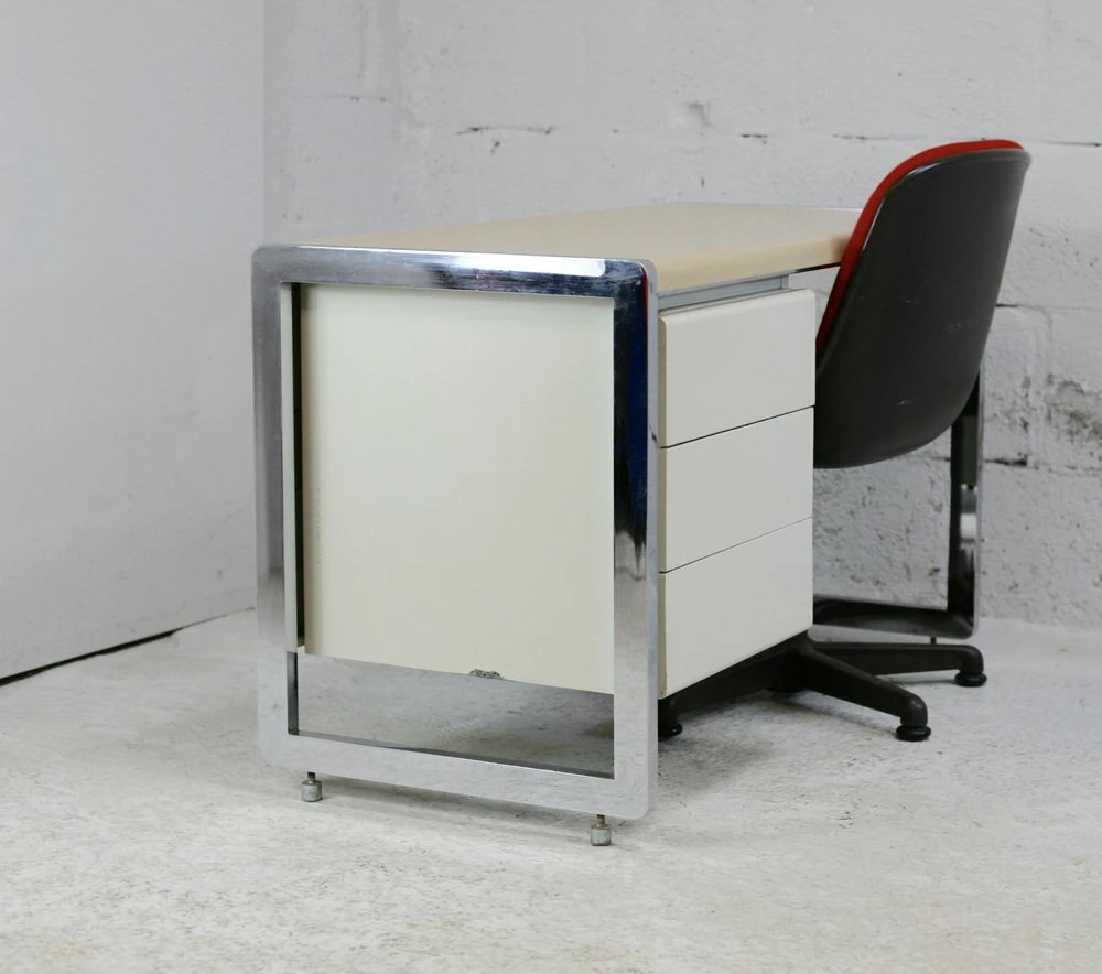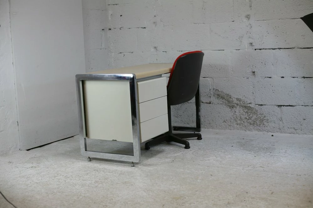 “Space Age” office. Lacquered steel, chromed steel. France, Circa 1970.