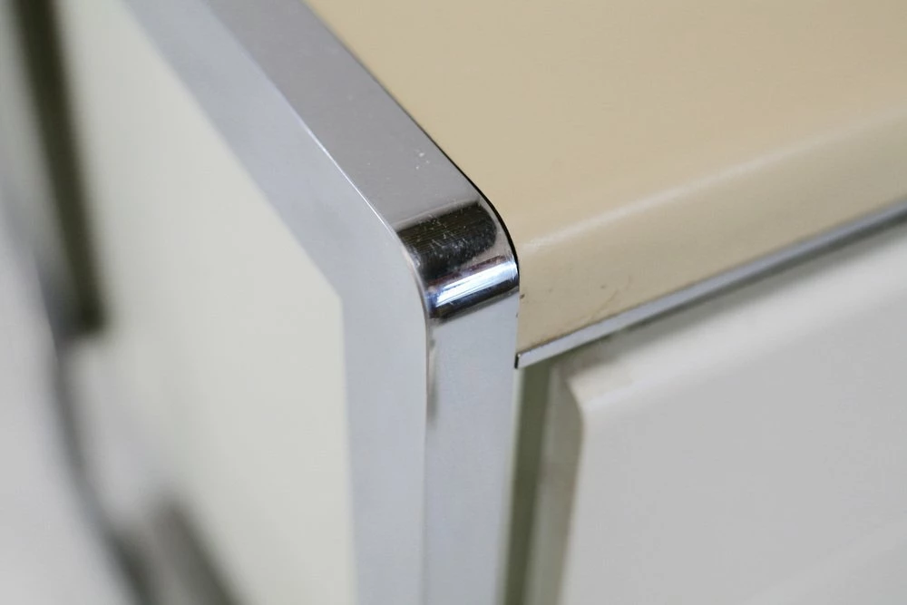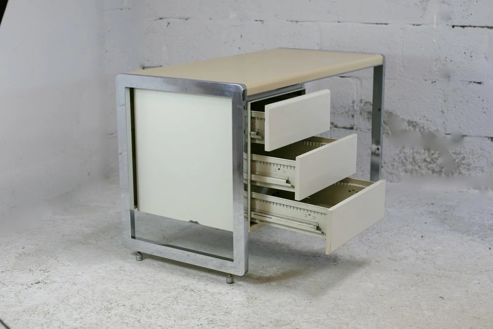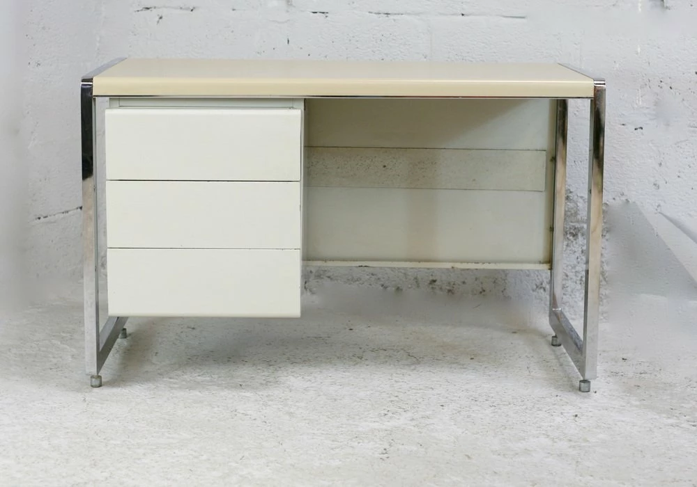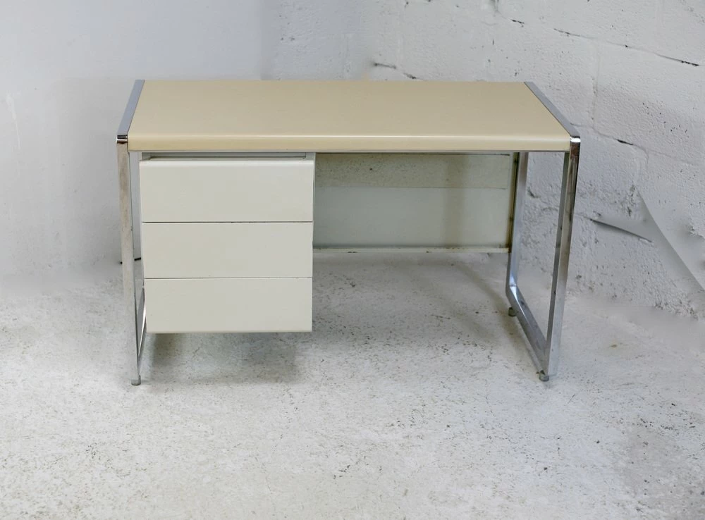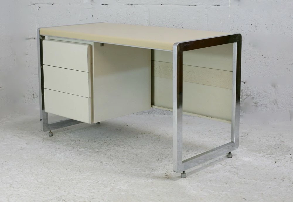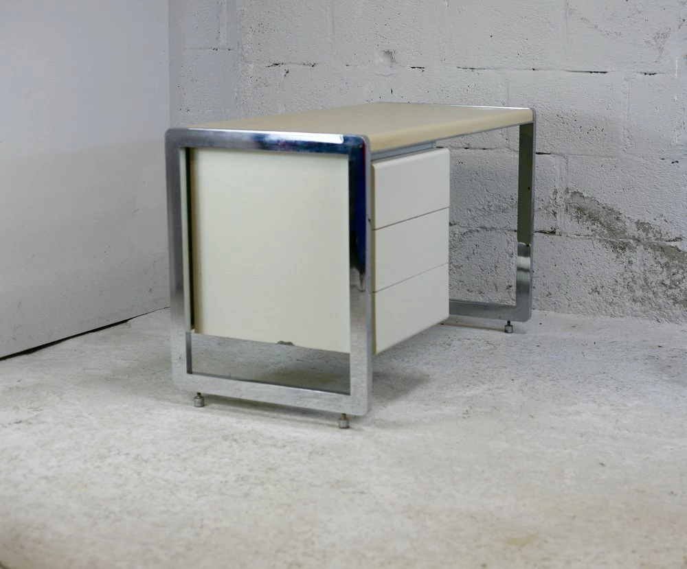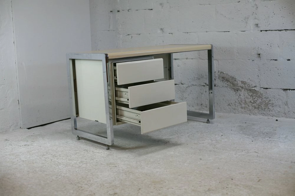 “Space Age” office. Lacquered steel, chromed steel. France, Circa 1970.