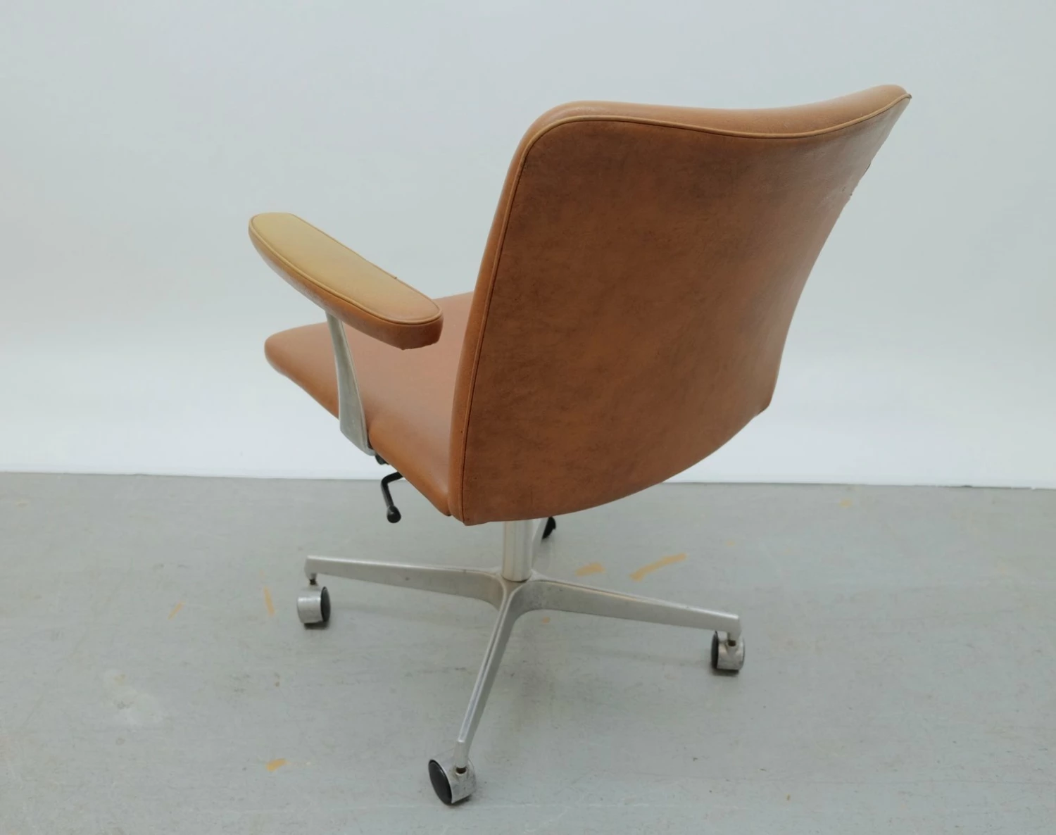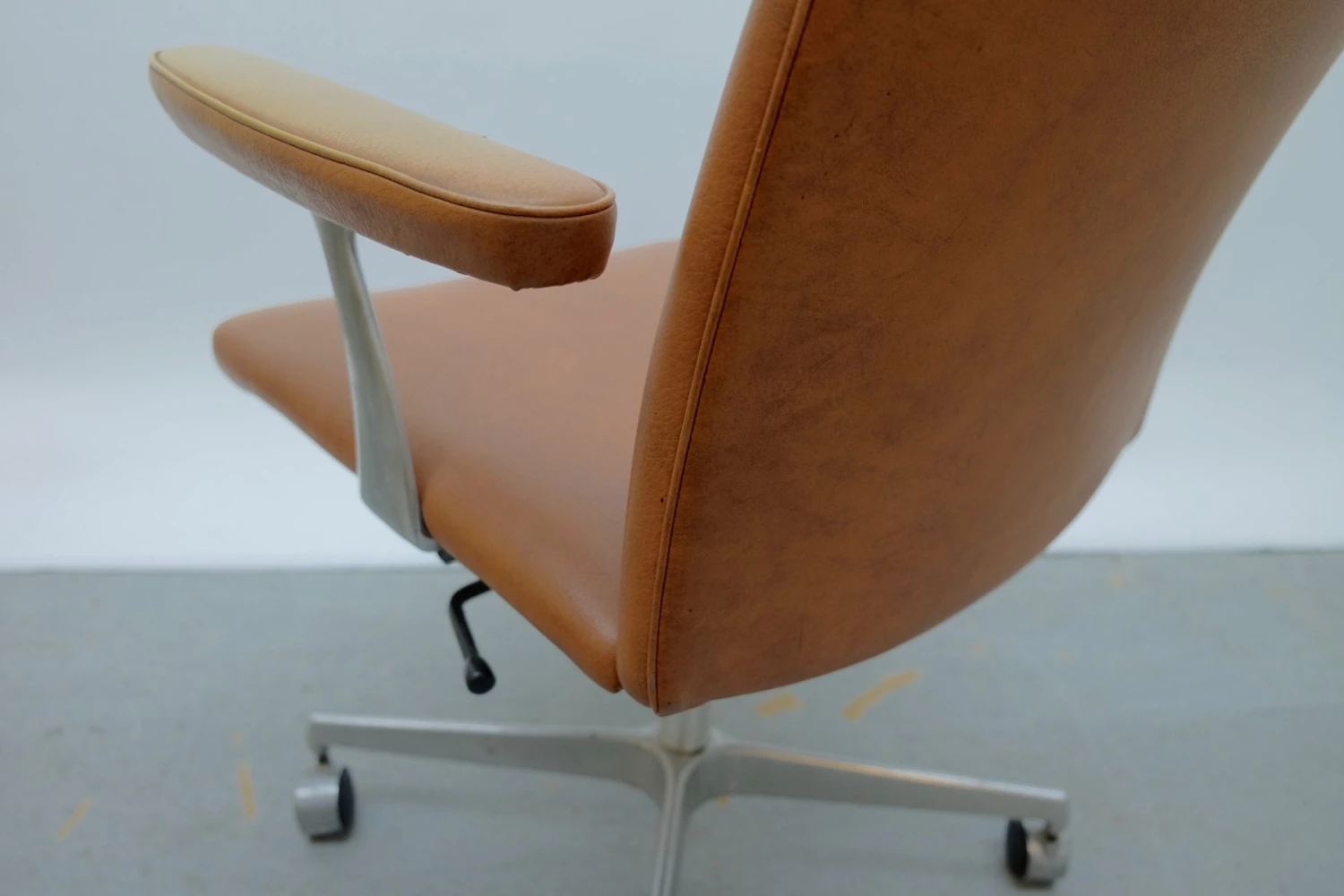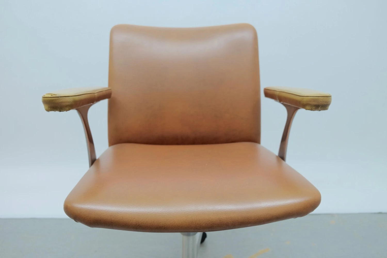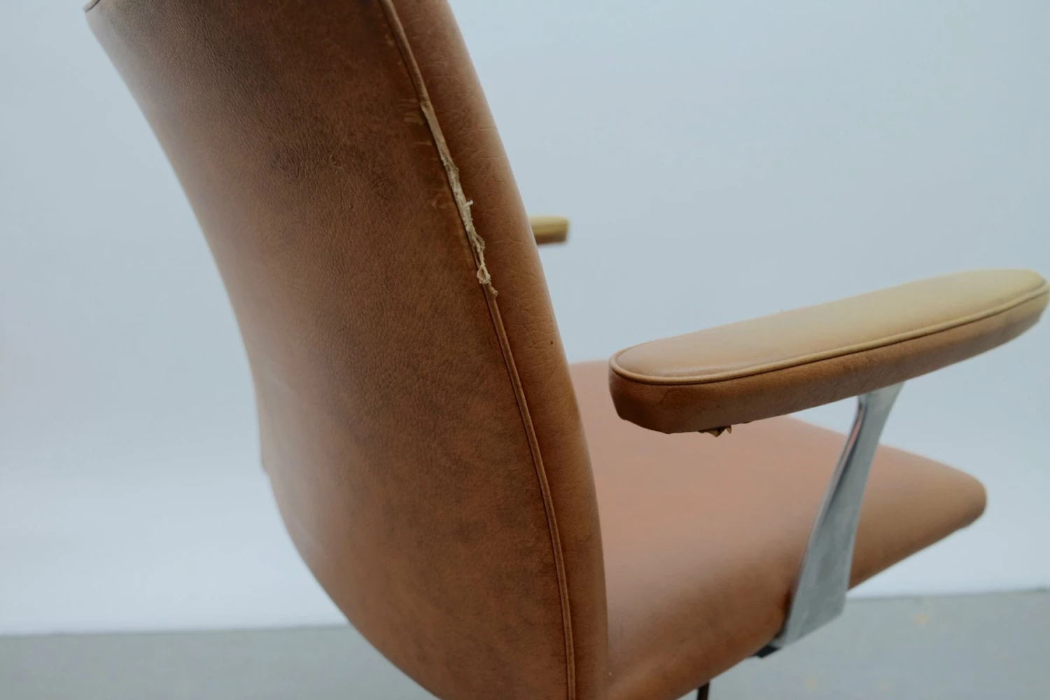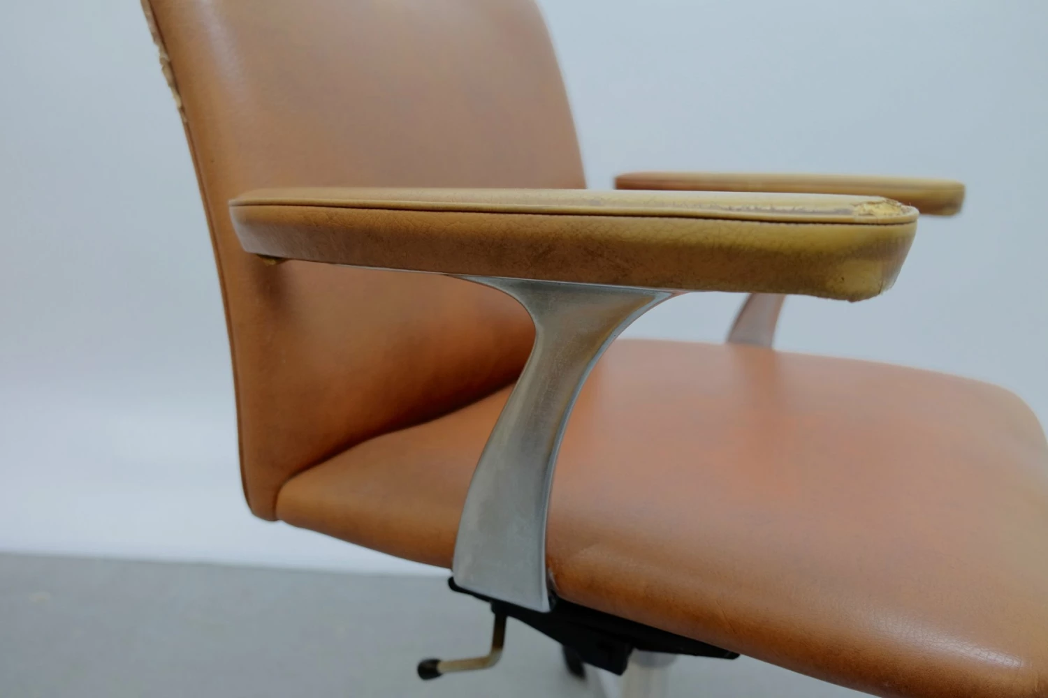 Heavy signs of use, The chair has damage to the armrest and the caddy |