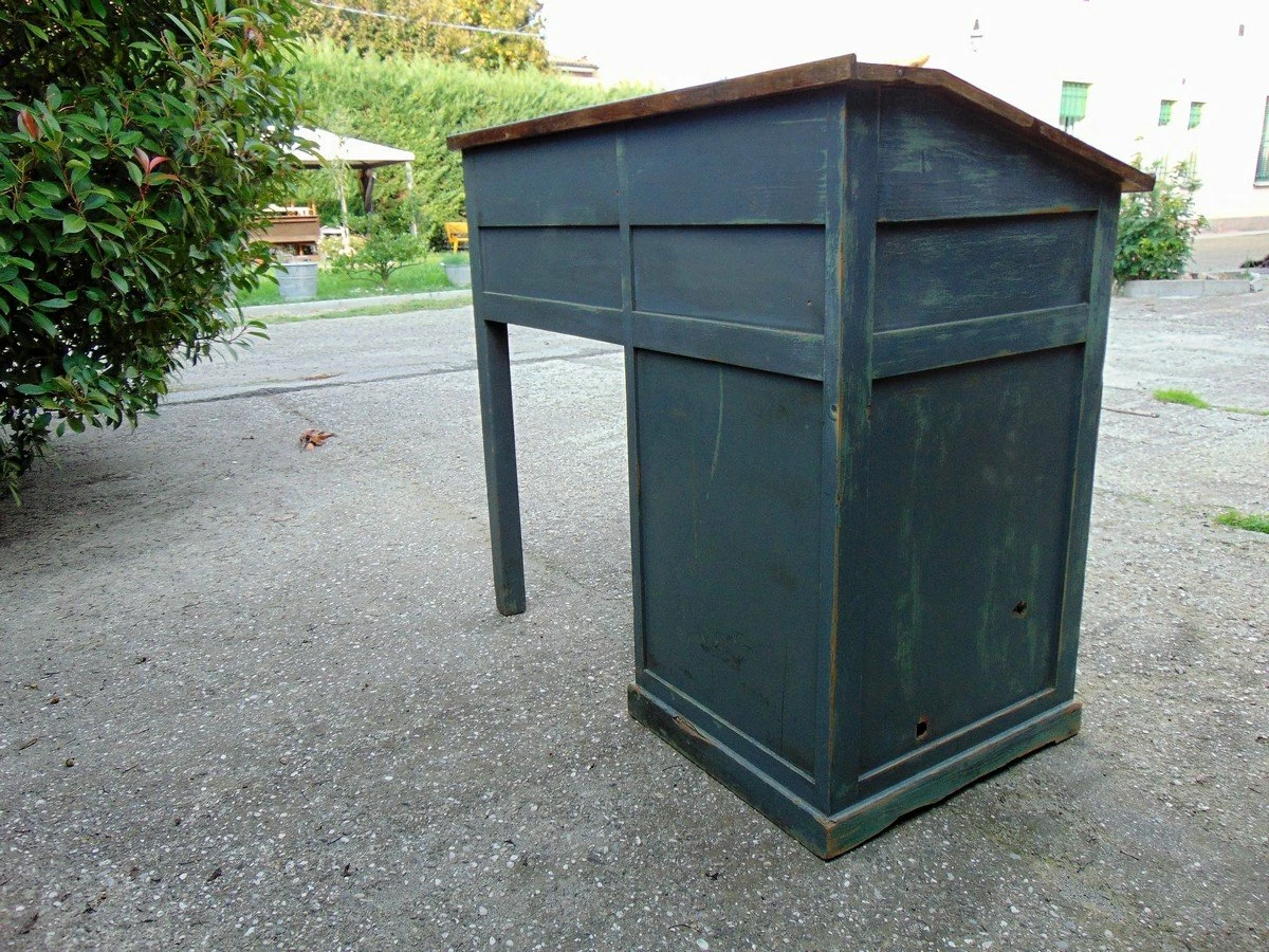 Patina consistent with age and use, scrivania ripulita mantenendo segni e patina del tempo. |
