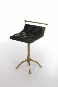 French vintage rotatable harpist’s stool in gilt brass with tufted leather seat and claw feet.
